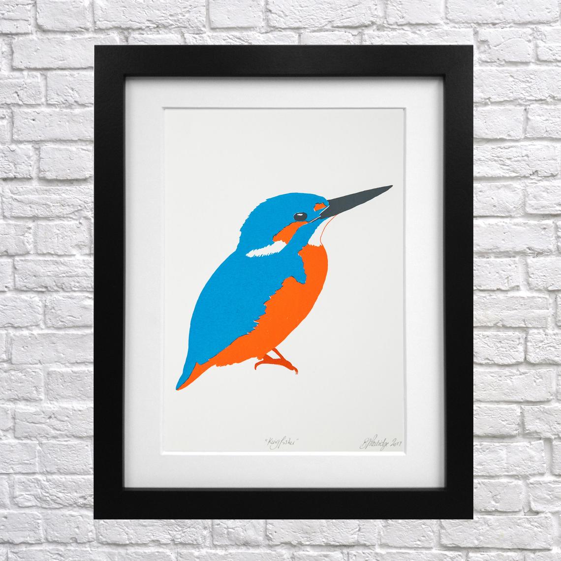 Kingfisher Screen Print – animal print – bird picture – bird wall art – british woodland bird – modern print – gift for bird lovers – bird lover – gift for dad – water bird – river bird – bird illustration