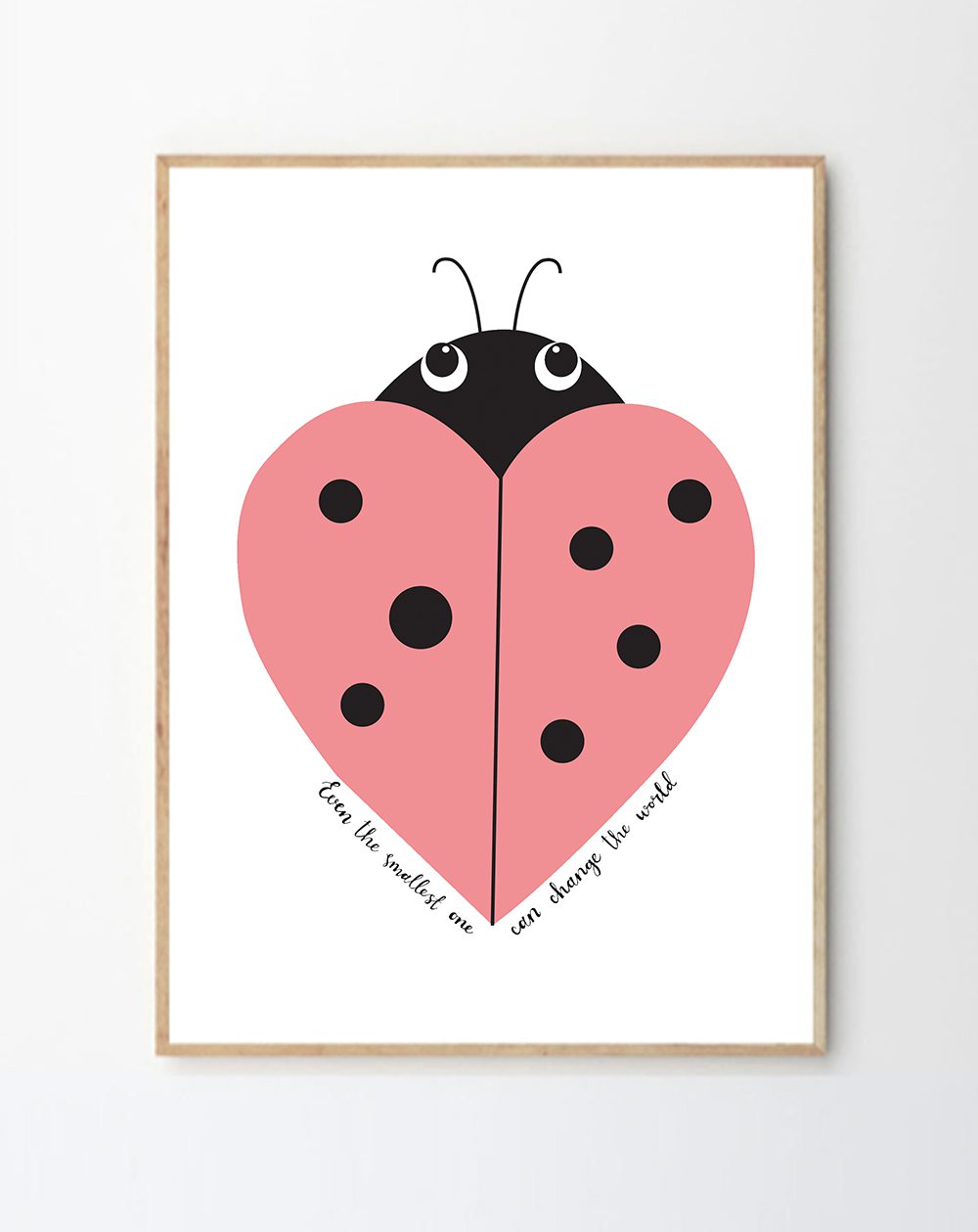 The charming ladybird print feature the lovely quote ‘Even the smallest one can change the world’ and would make a lovely addition to any nursery or childrens room.