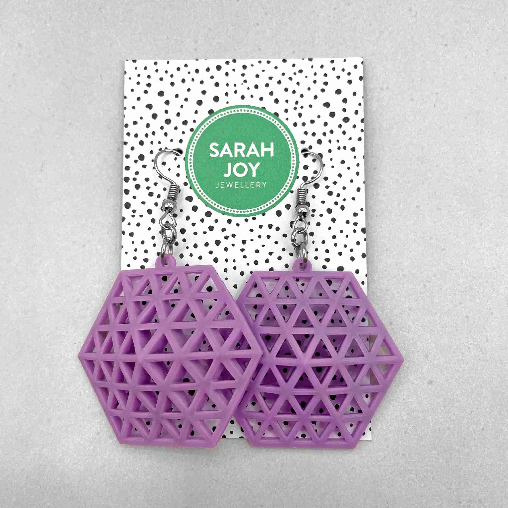 Striking geometric design 3D printed in easy-wear lightweight resin. Available in a range of vibrant colours.