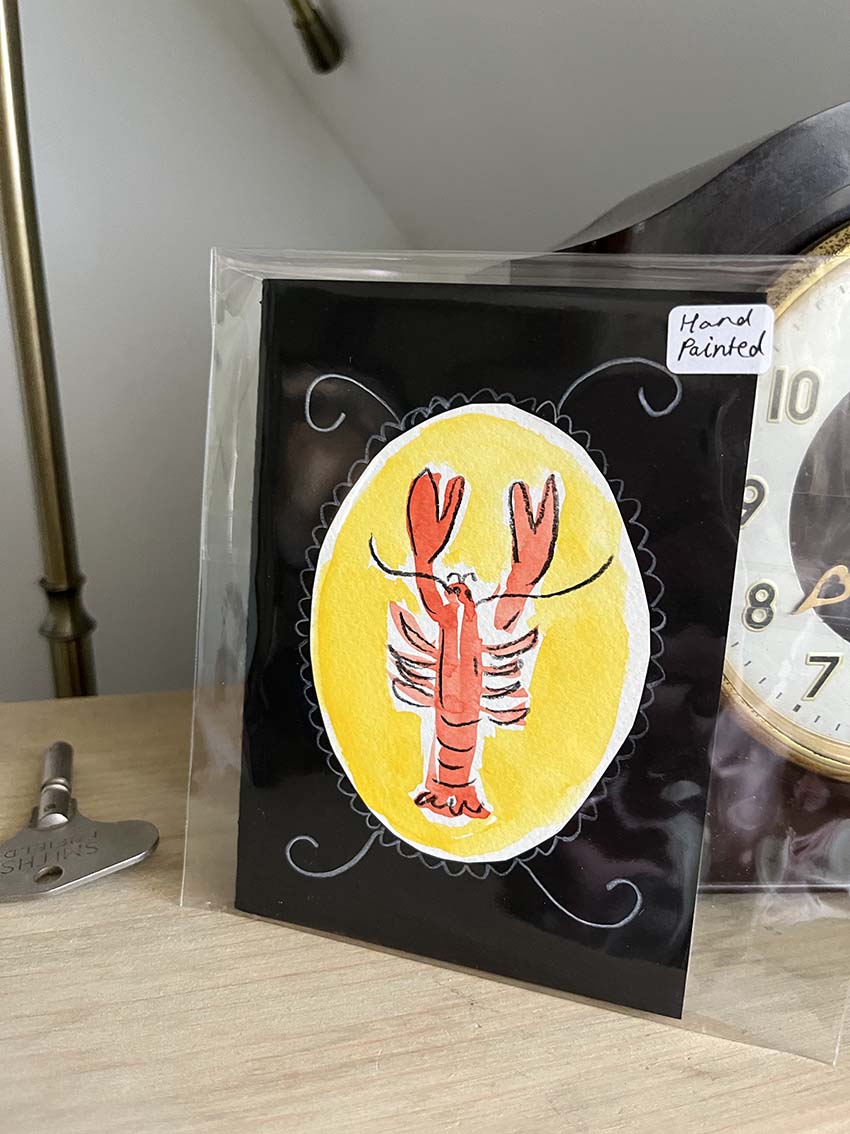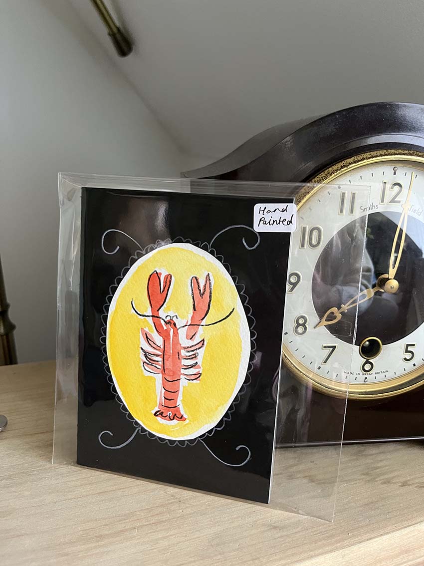 The cover artwork is an original watercolour painting, the colours are rich and bold, giving the lobster a lively, eye-catching presence on the cover, set against a clean, light background that makes the design pop.