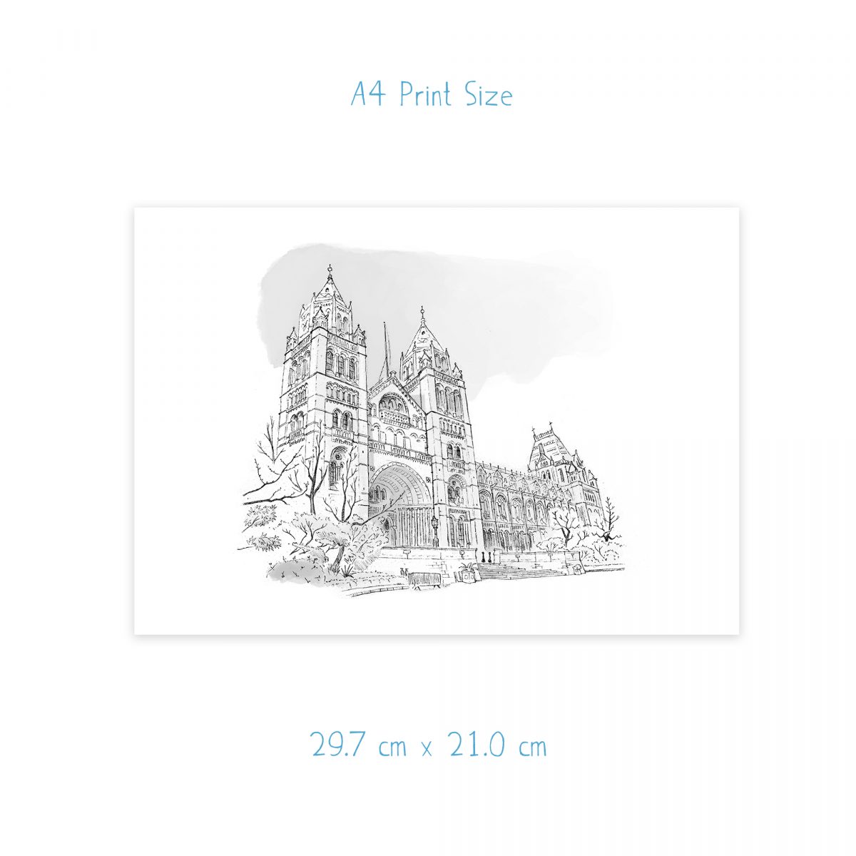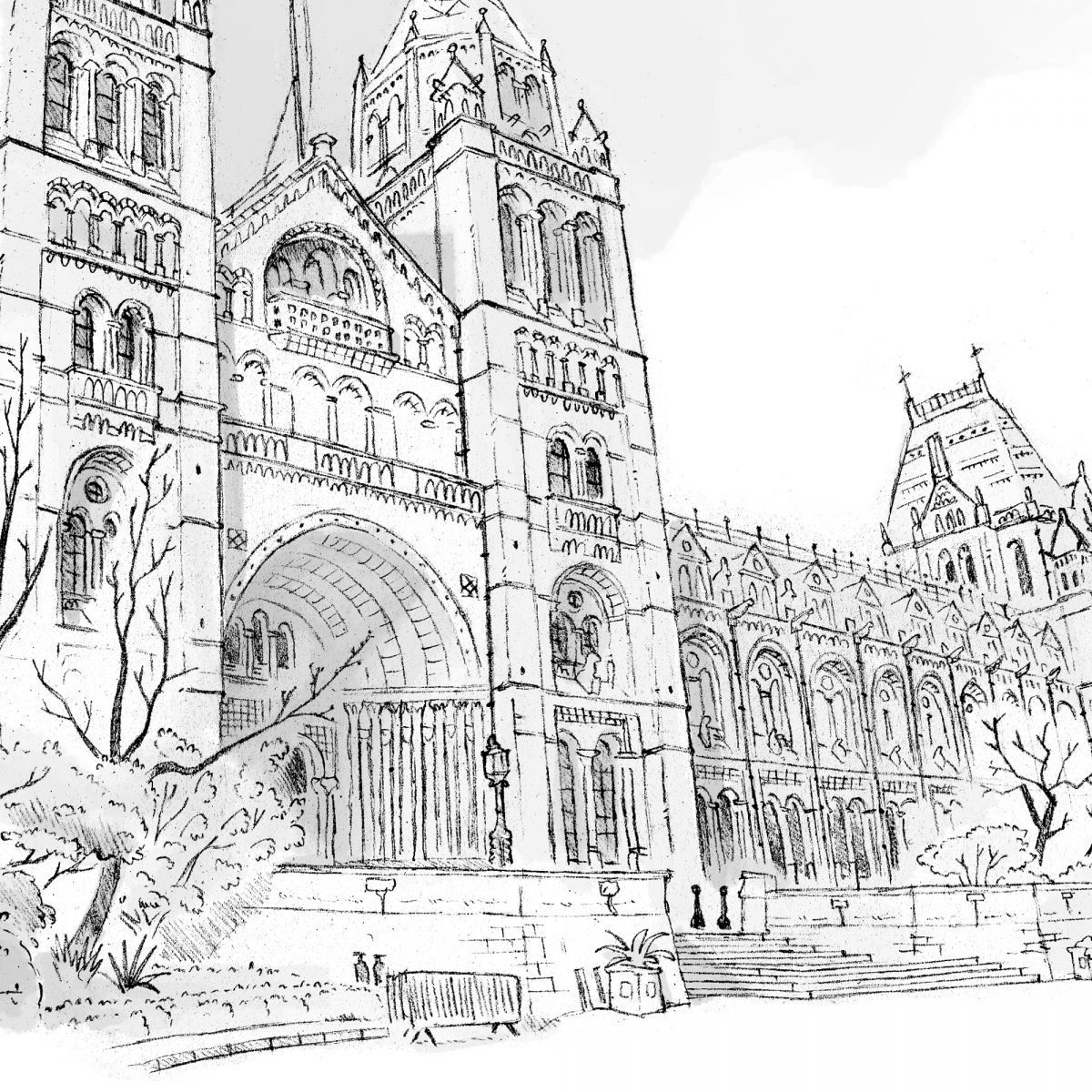 A print of my sketch of London’s famous Natural History Museum. The NHM in South Kensington is one of the best museums in the country, with a collection of over 80 million specimens including an amazing collection of dinosaur skeletons.