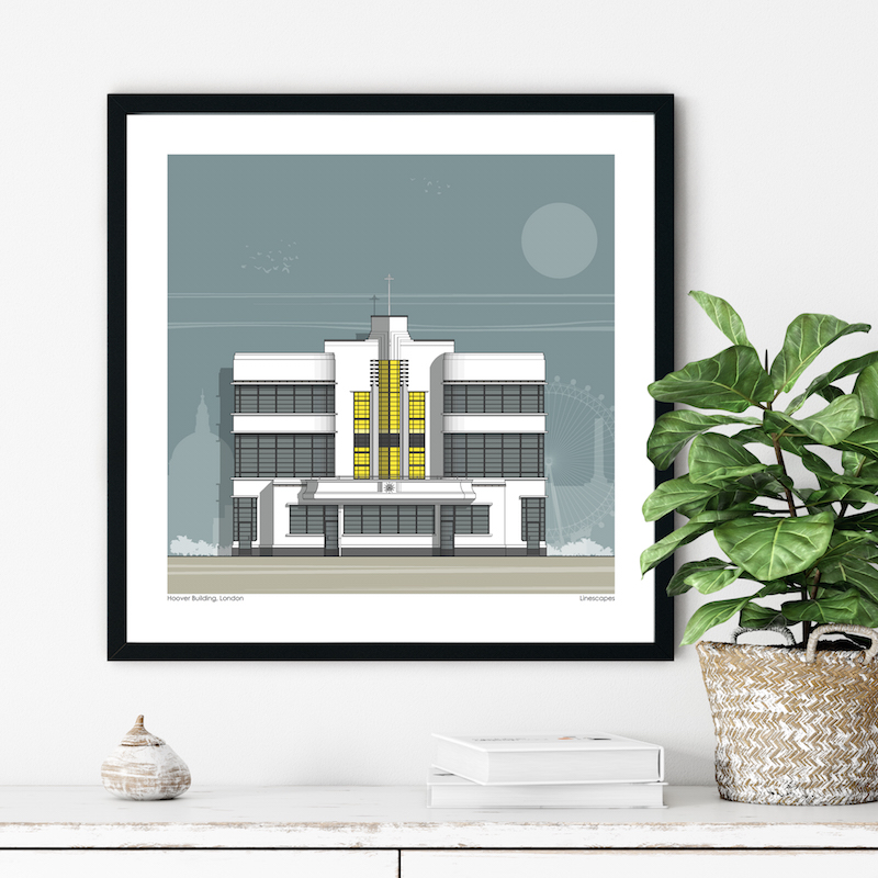 The London Hoover Building Print limited edition Signed Giclee Print come in a choice of 4 different colour backgrounds.