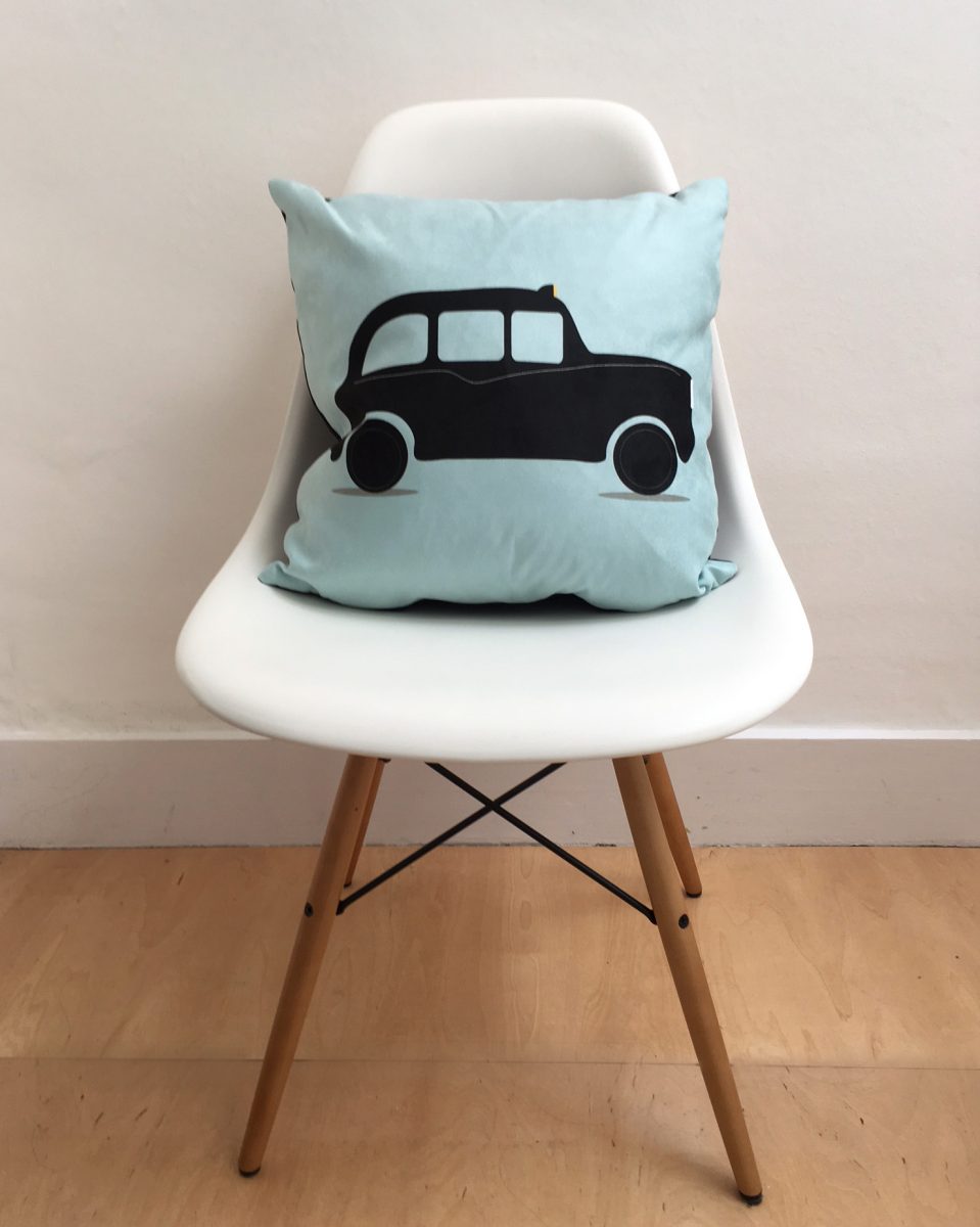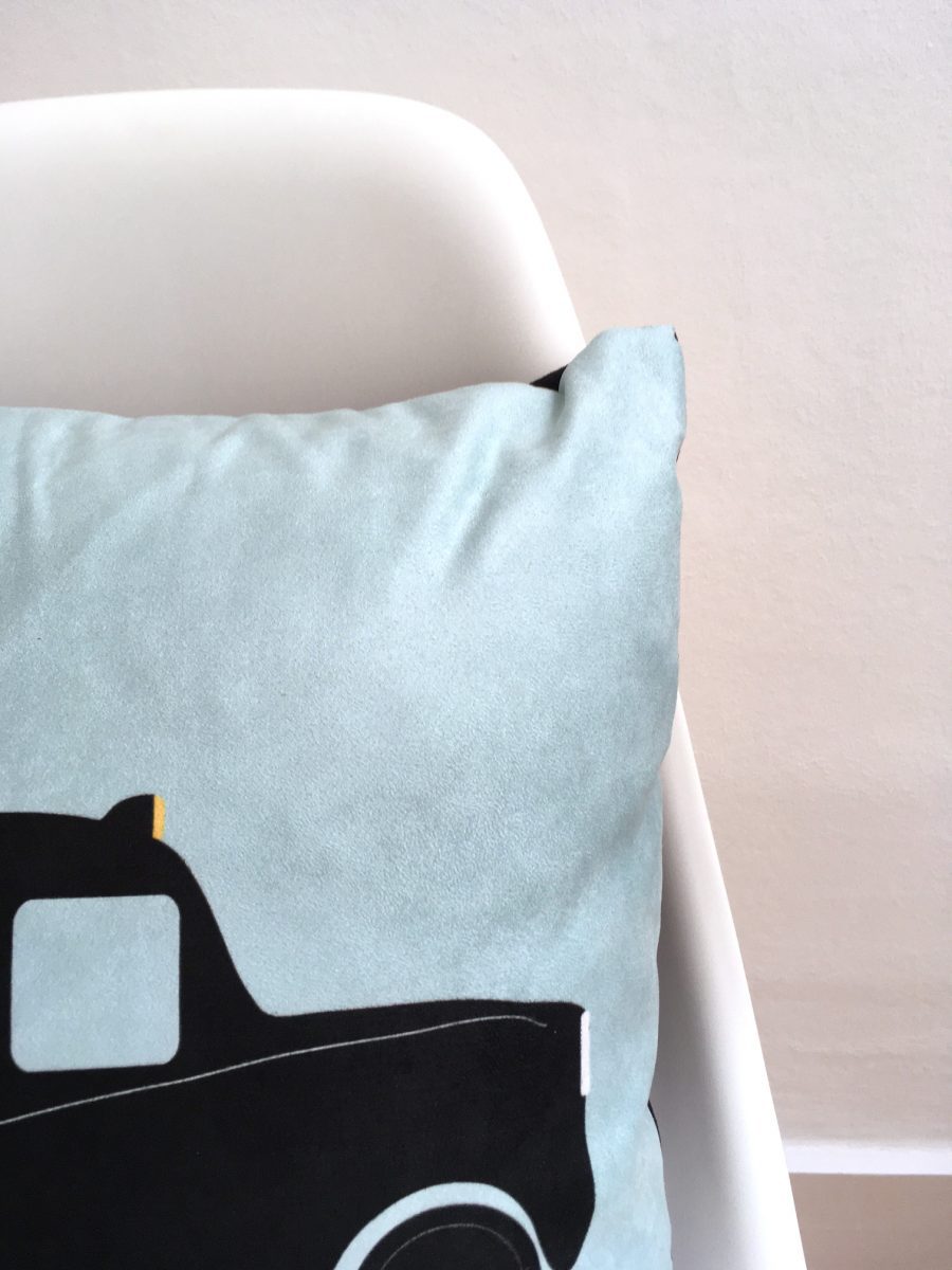 Crafted with soft vegan suede, this cushion is as cozy as it is stylish, making it the perfect addition to any child’s bedroom, playroom, or reading nook. The plush cushion features a black cab design.
