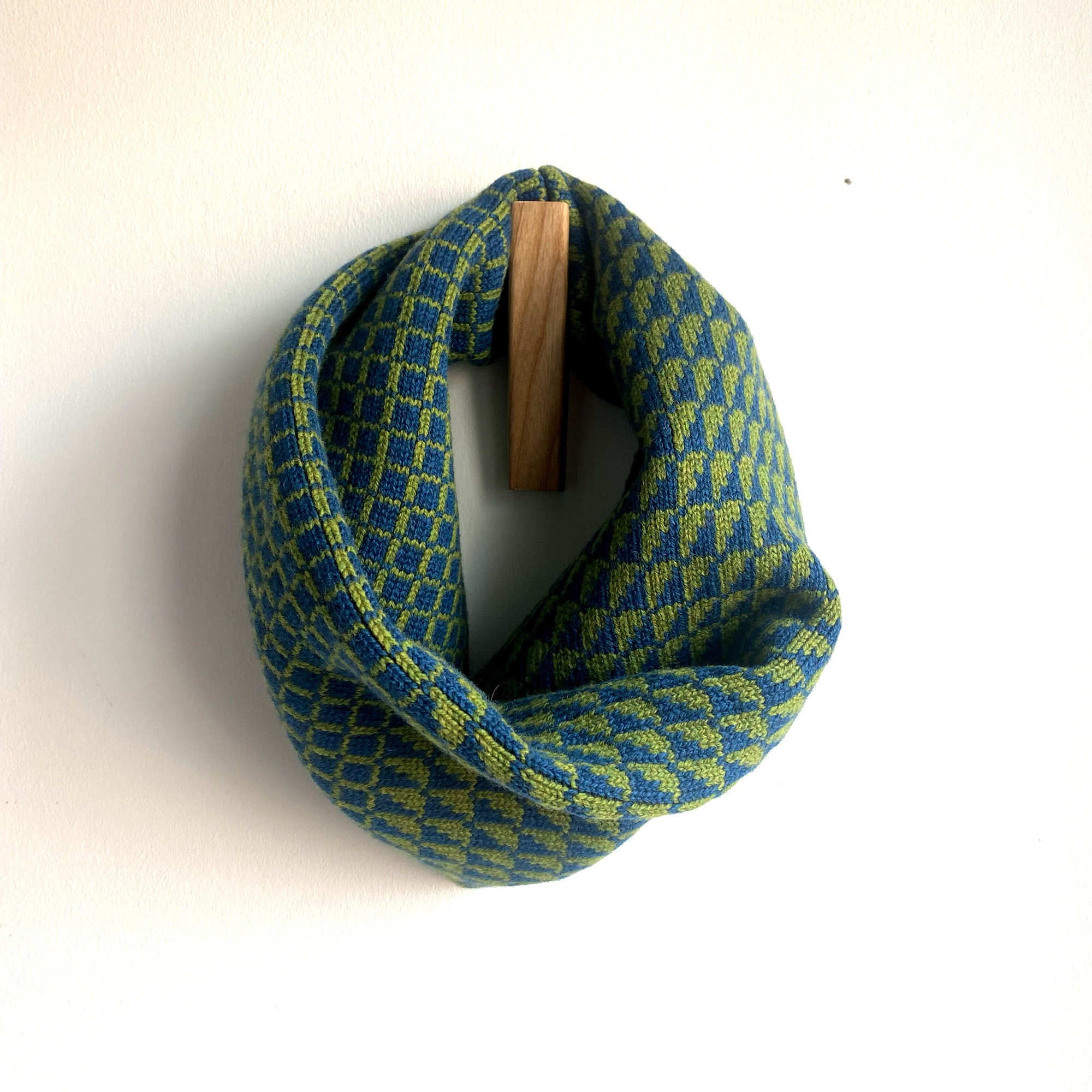 Stay warm in style with this beautifully crafted merino wool snood, designed in rich moss green and teal dark blue tones. Each piece is individually made from luxury British-spun merino lambswool, offering the perfect blend of warmth, softness, and style.