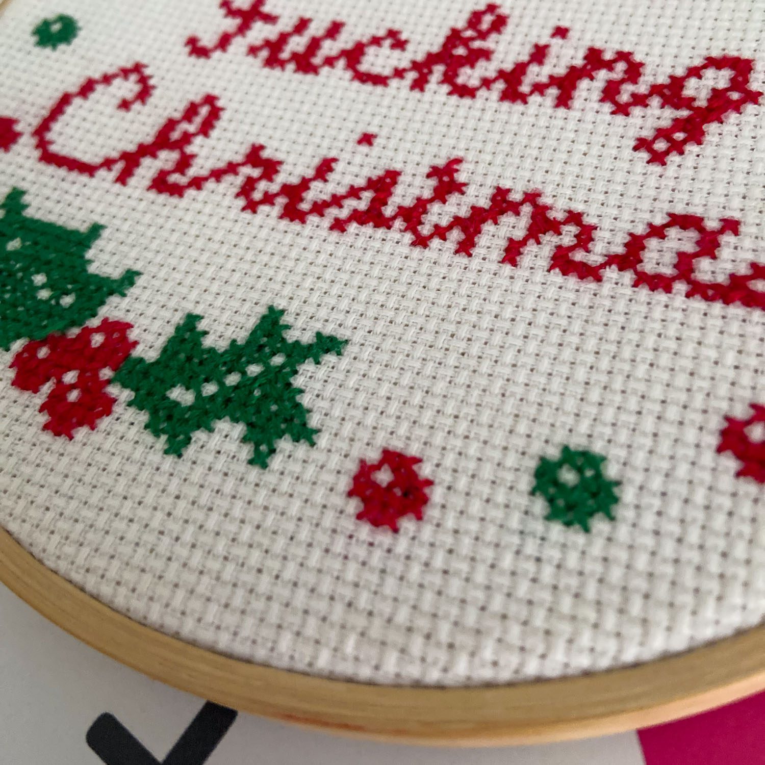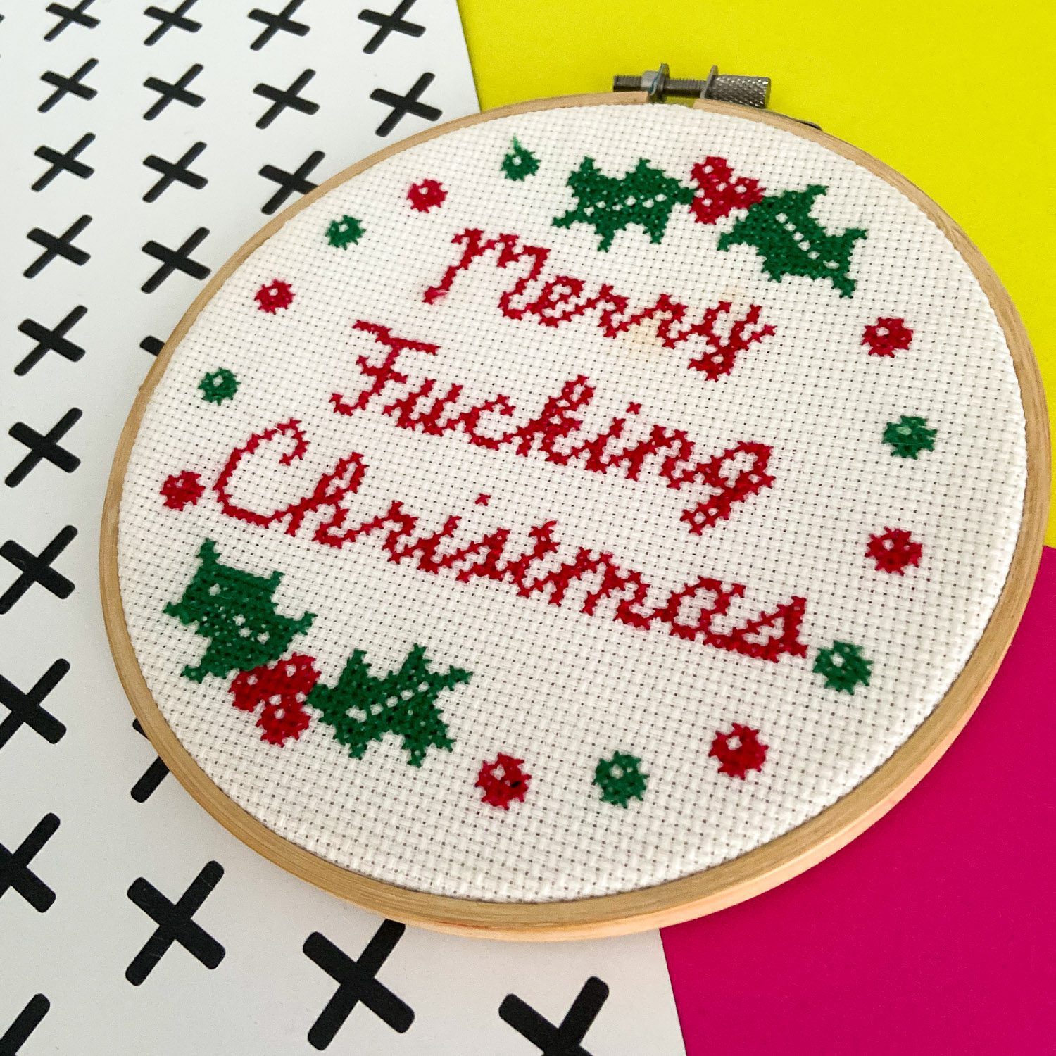 Inject some brutal honesty into your holiday decor with our “Merry F*cking Christmas” cross-stitch kit.