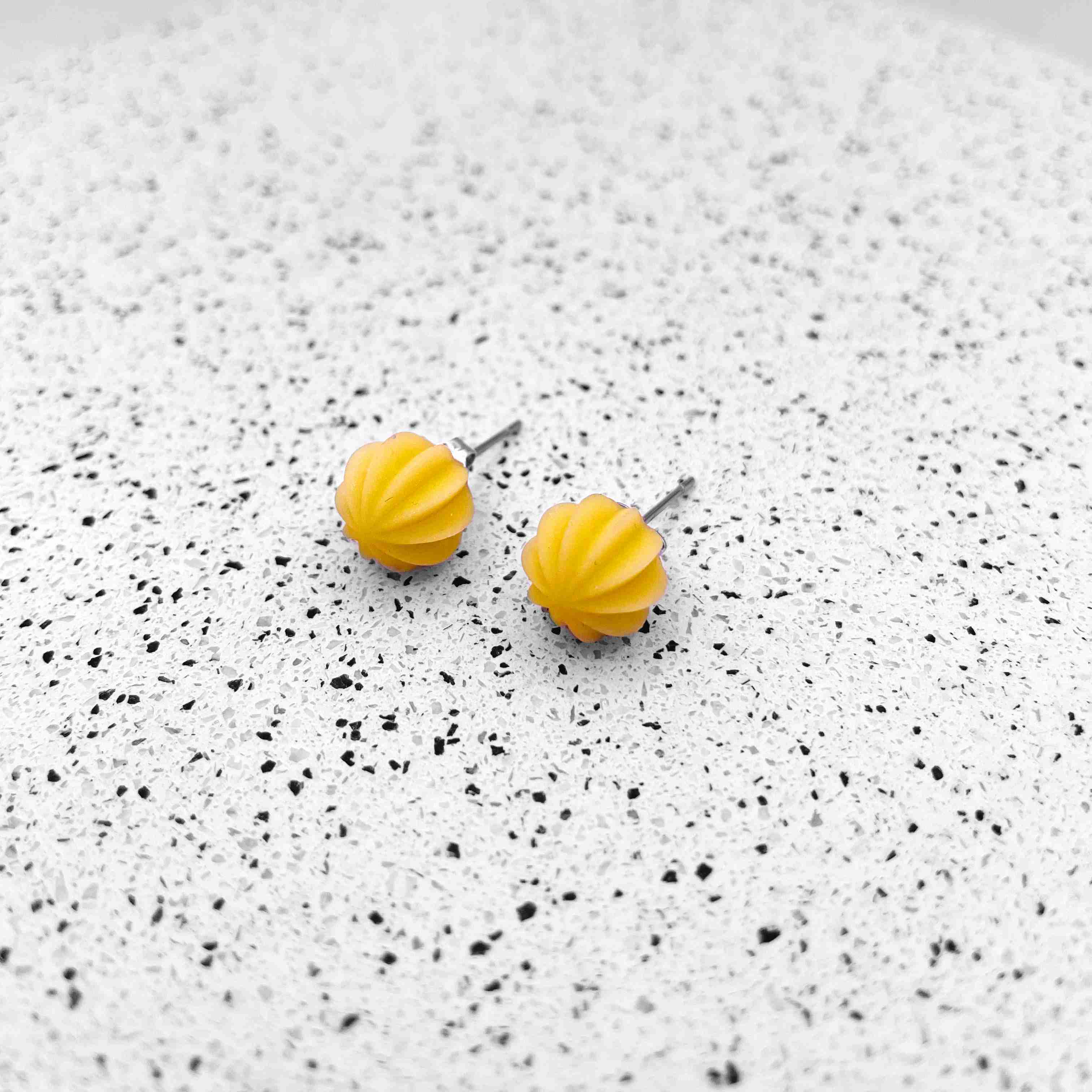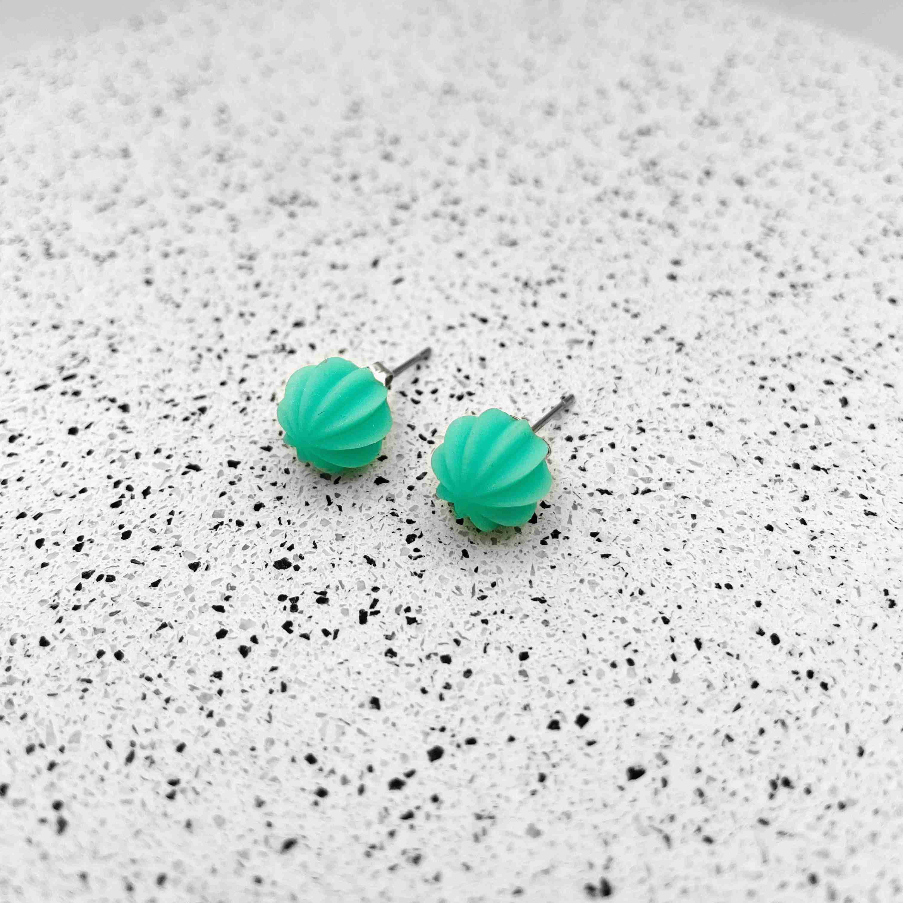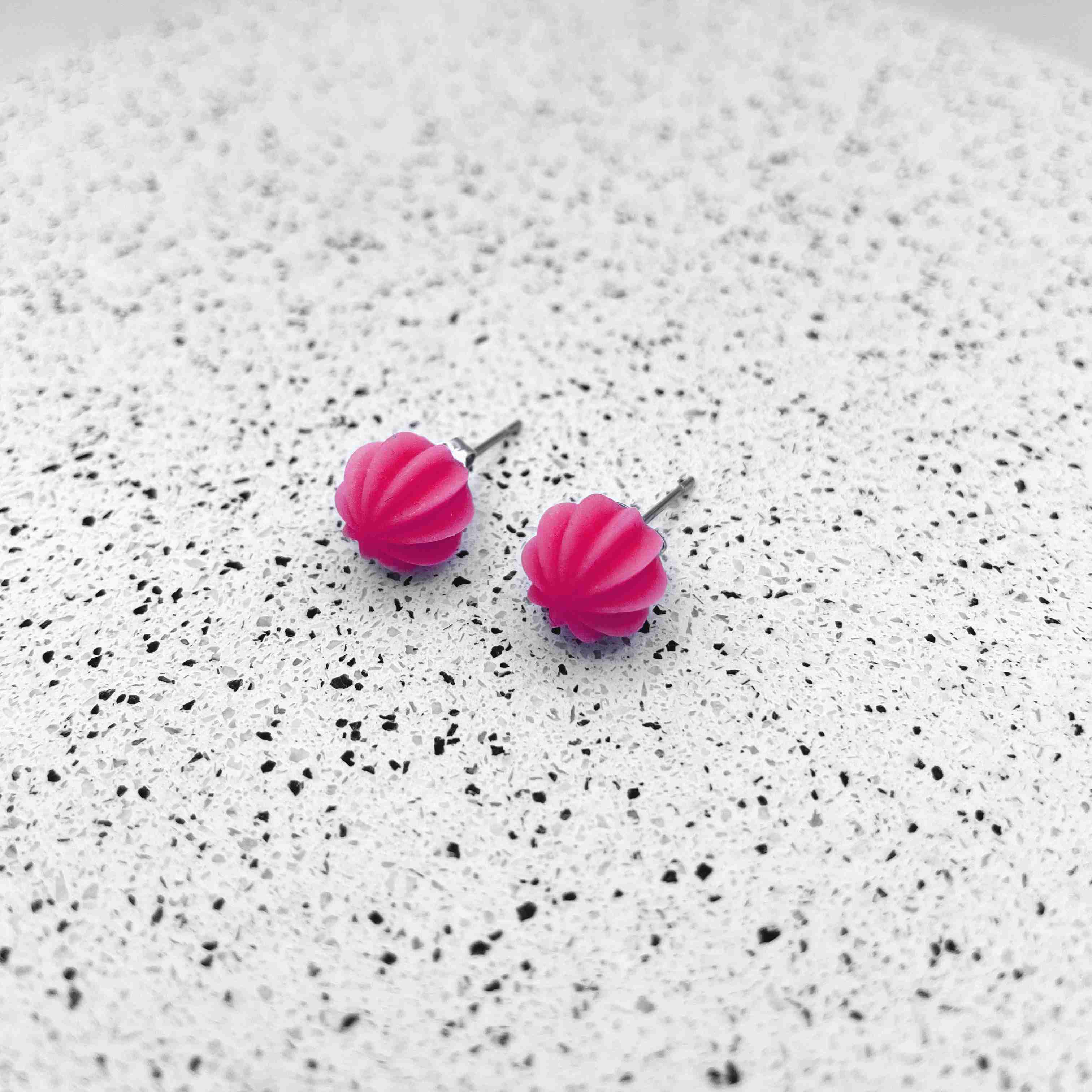 Colour pop mini stud earrings in a striped design. 3D printed in lightweight resin; statement jewellery that’s easy on the ear.