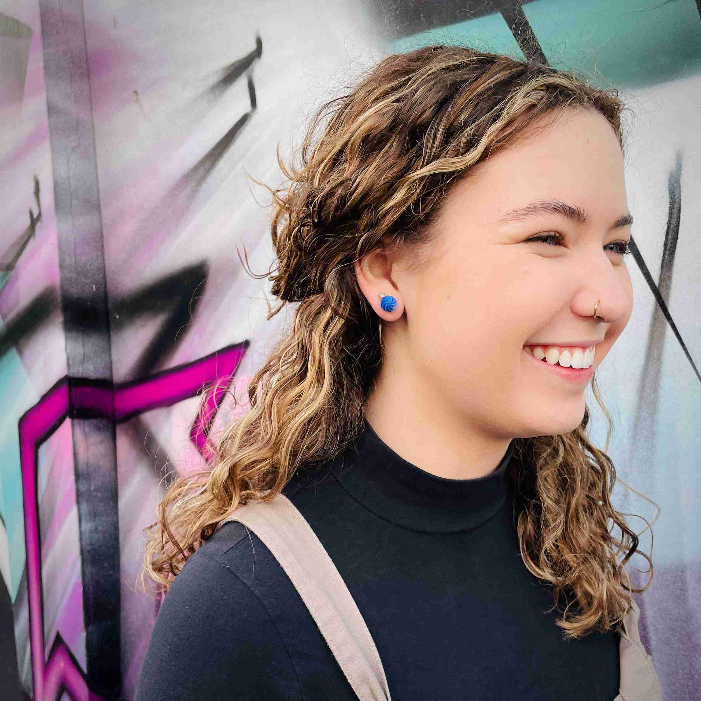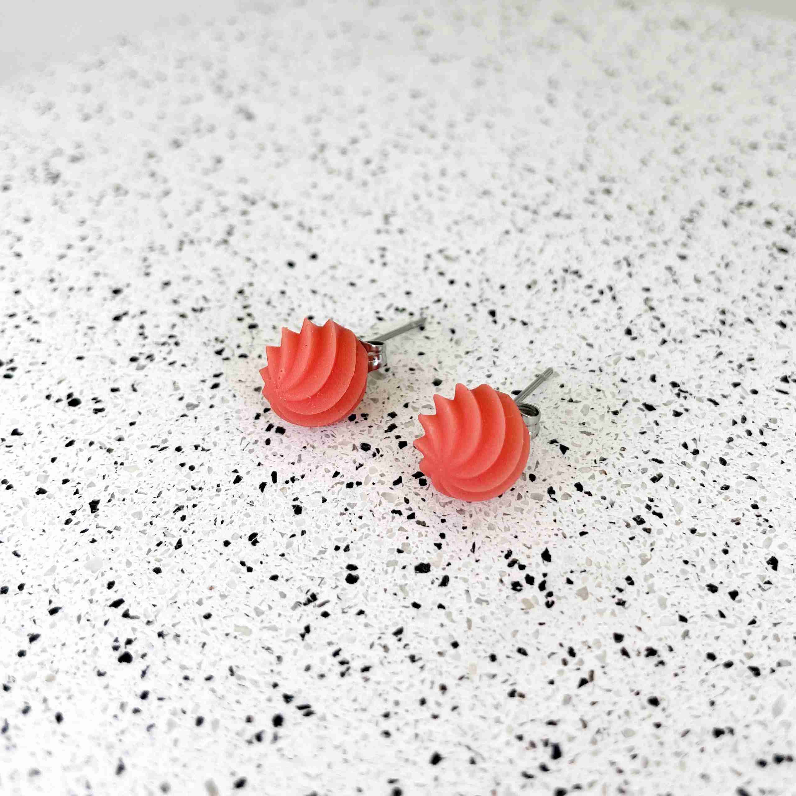 Colour pop mini stud earrings in a classic twist design. 3D printed in lightweight resin; statement jewellery that’s easy on the ear.