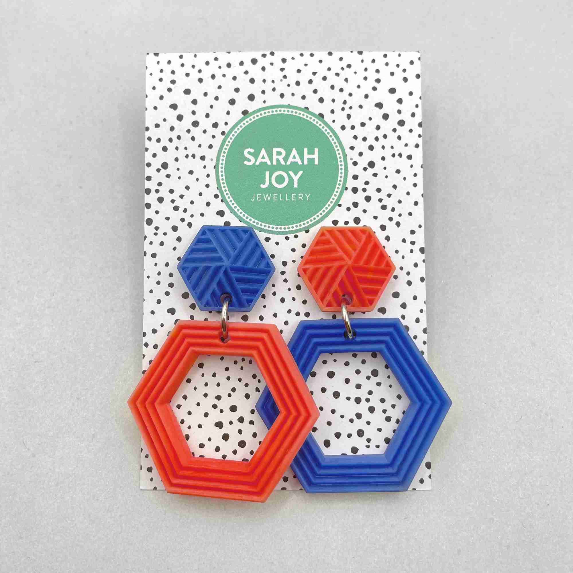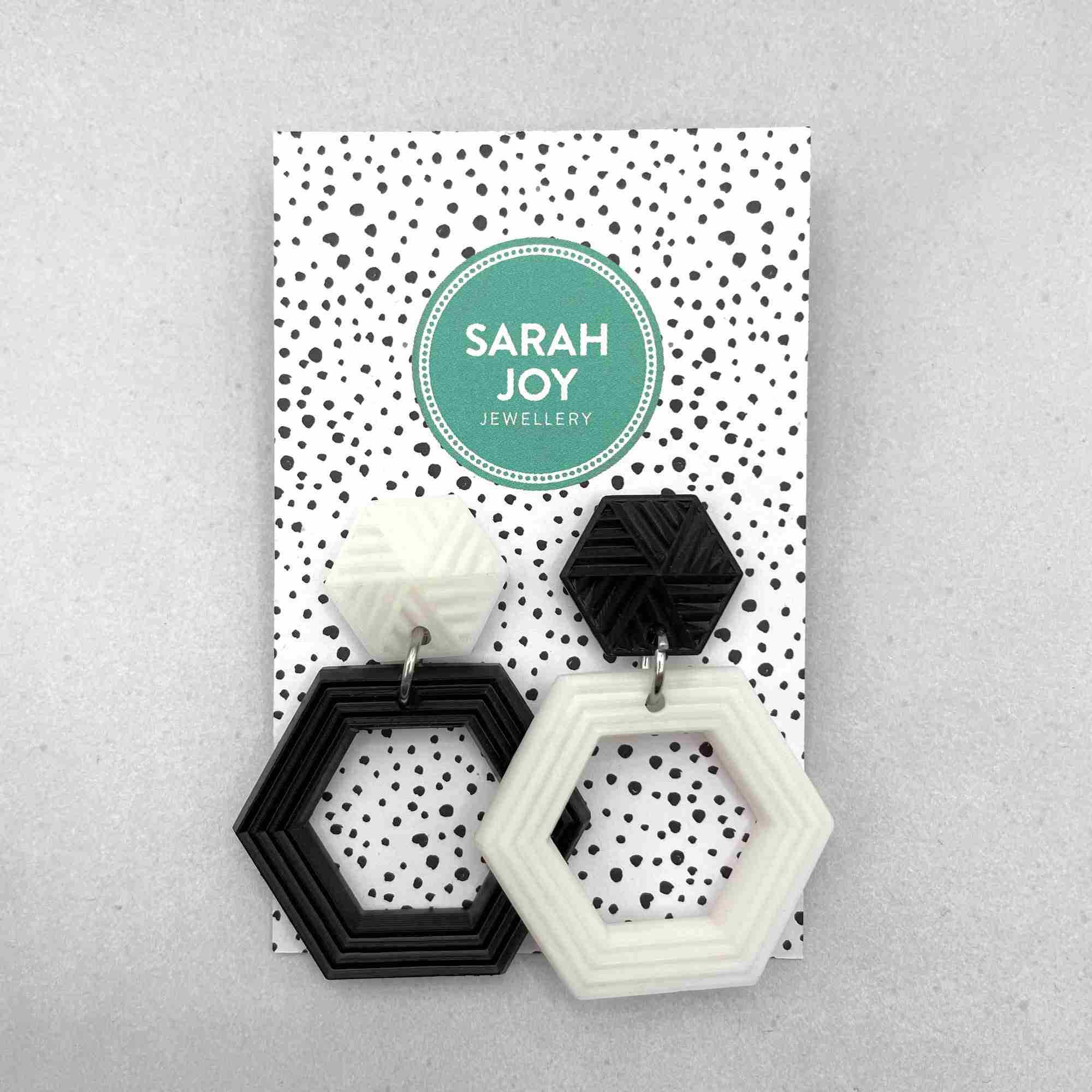 Quirky mismatch / asymmetric design 3D printed in lightweight resin. Choose any 2 colours to create your perfect pair!