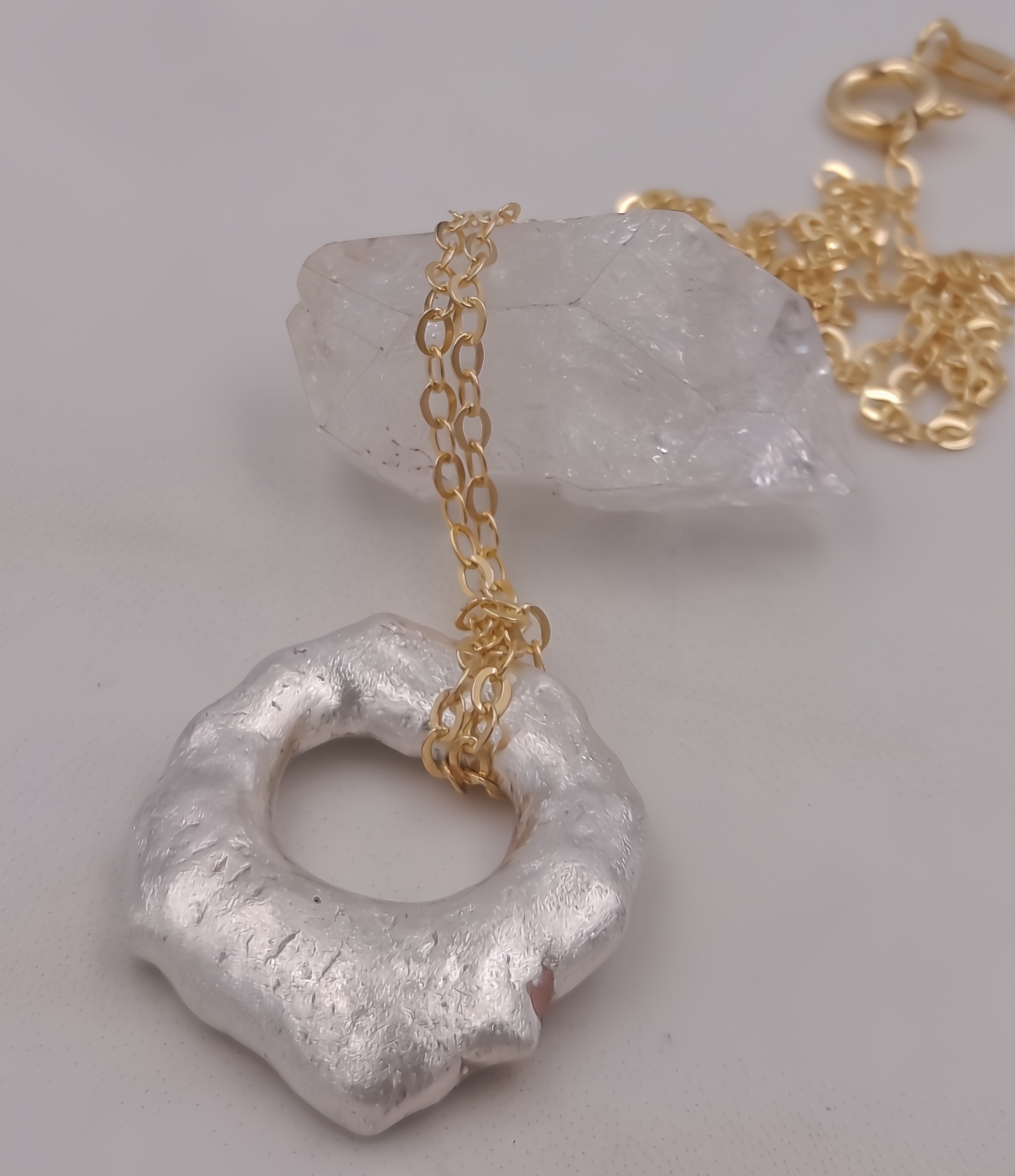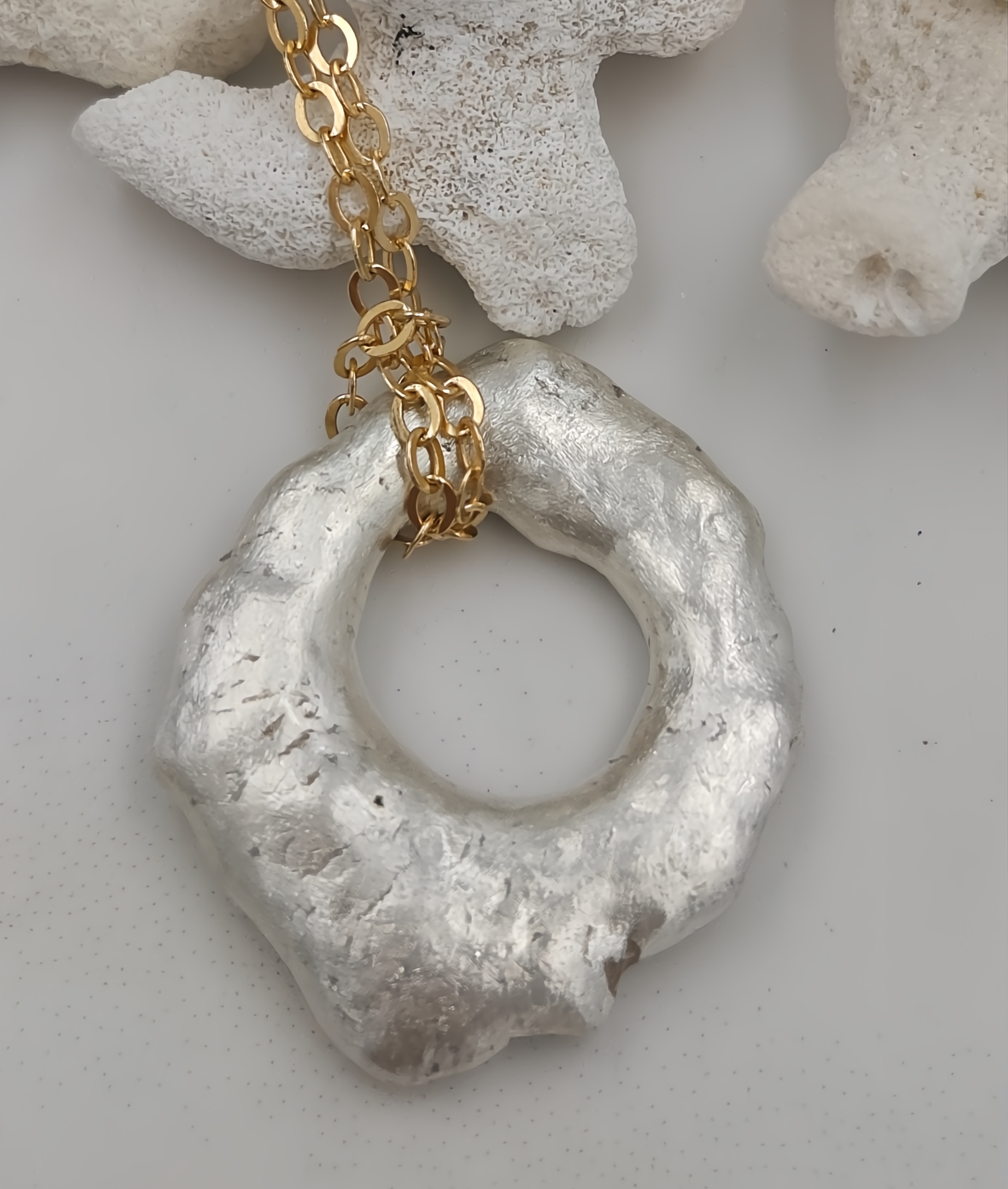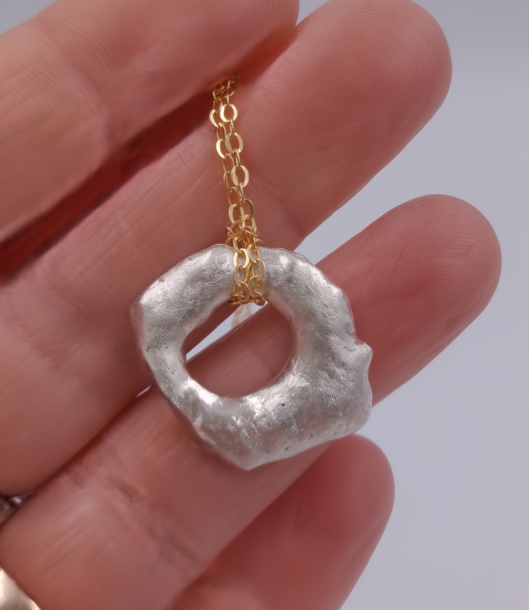 Molten Silver Irregular Circle Pendant Necklace – Chunky Organic Statement Piece