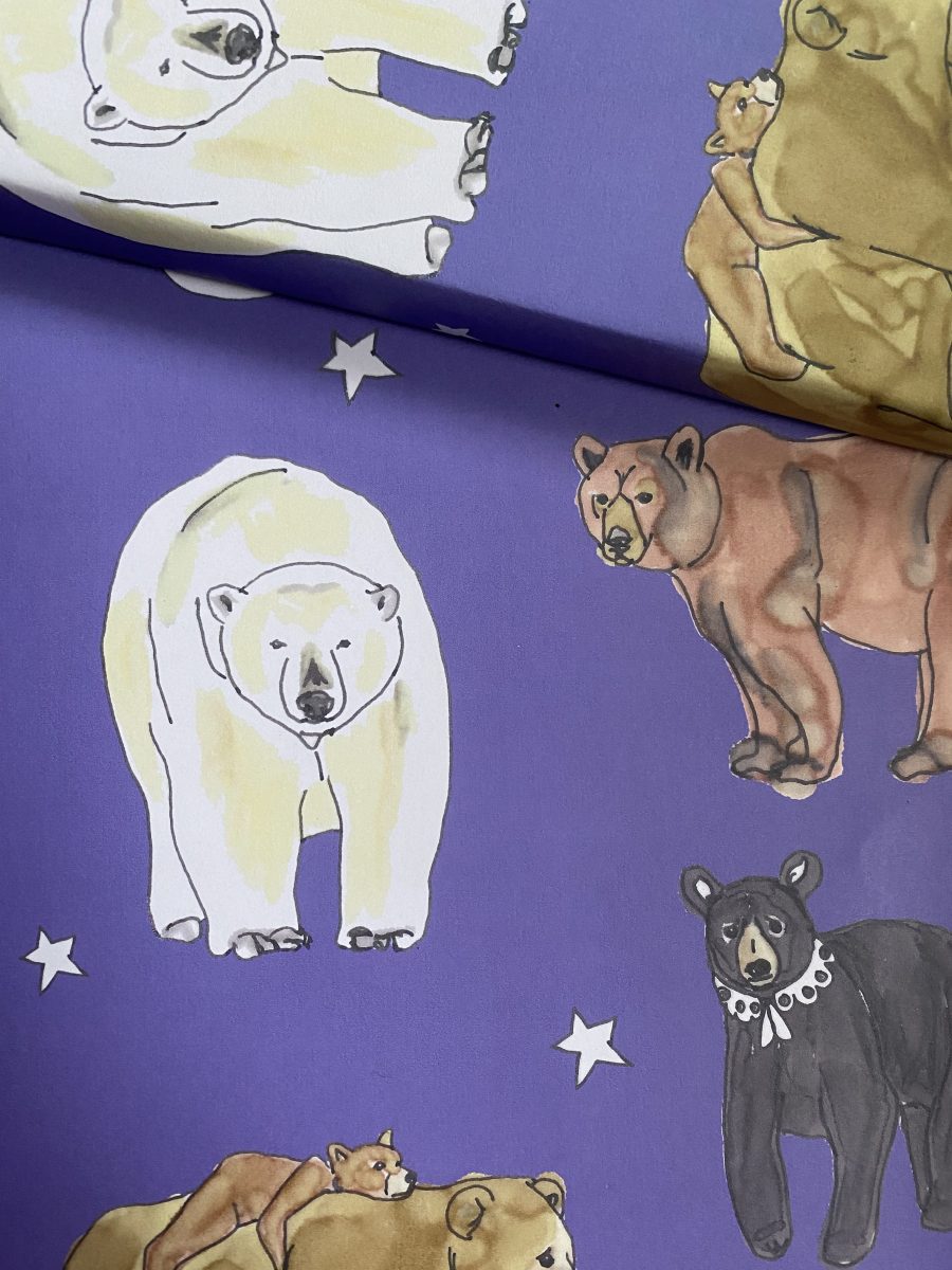 Two Sheets of bear patterned thick wrapping paper, with hand drawn Grizzly, Black Bears and Brown Bears, digitally printed on to 120gsm uncoated/matte wrapping paper. Each sheet is 700mm x 500mm.