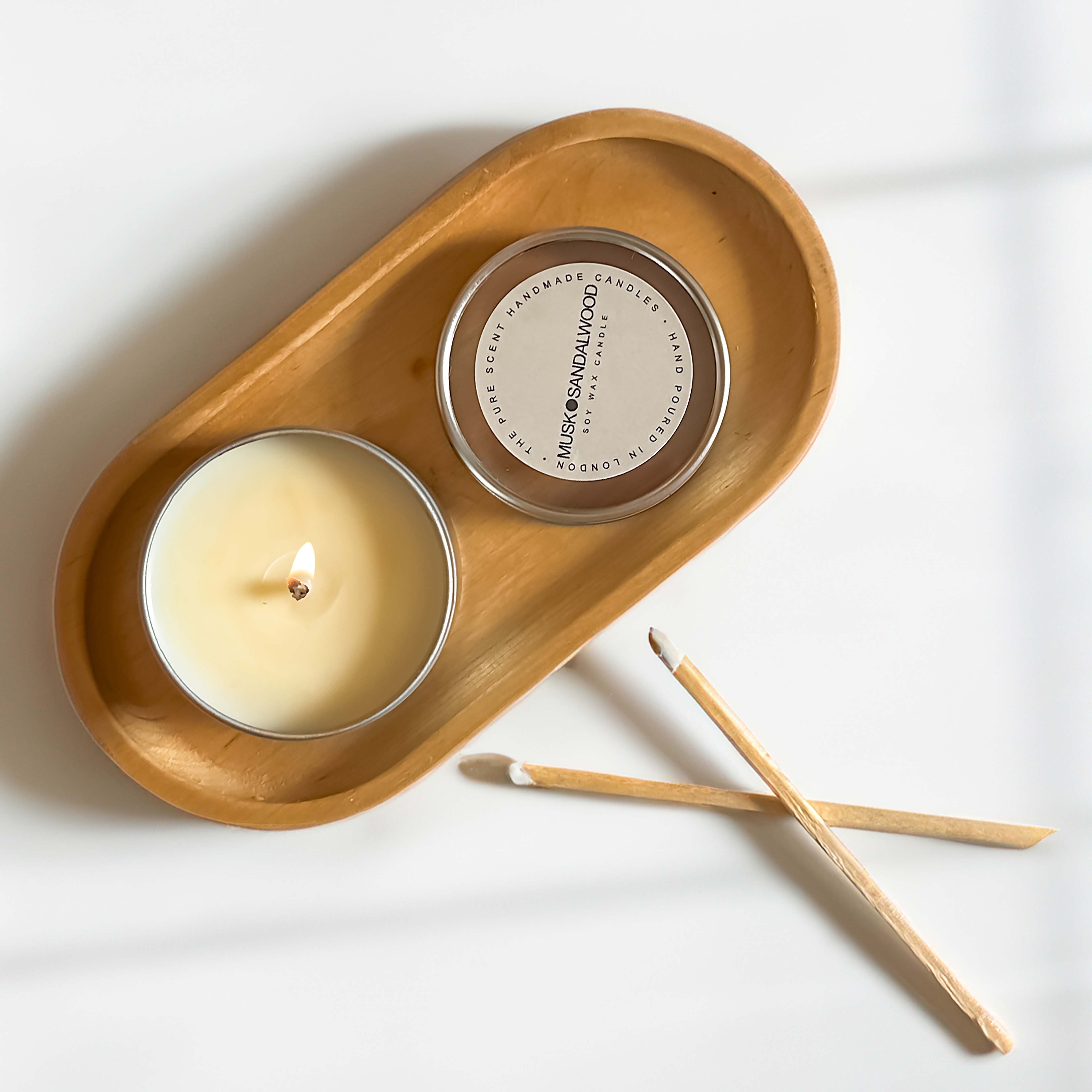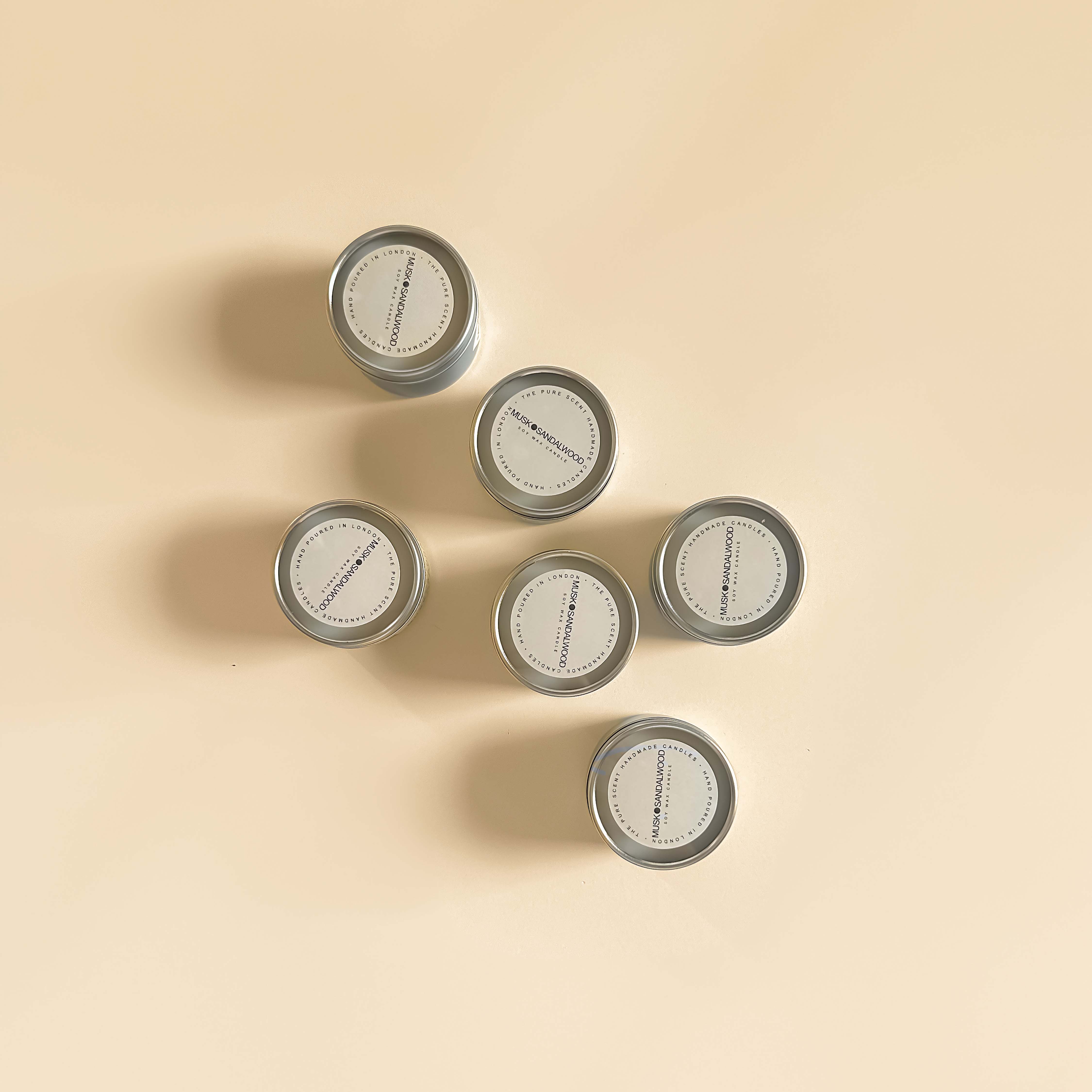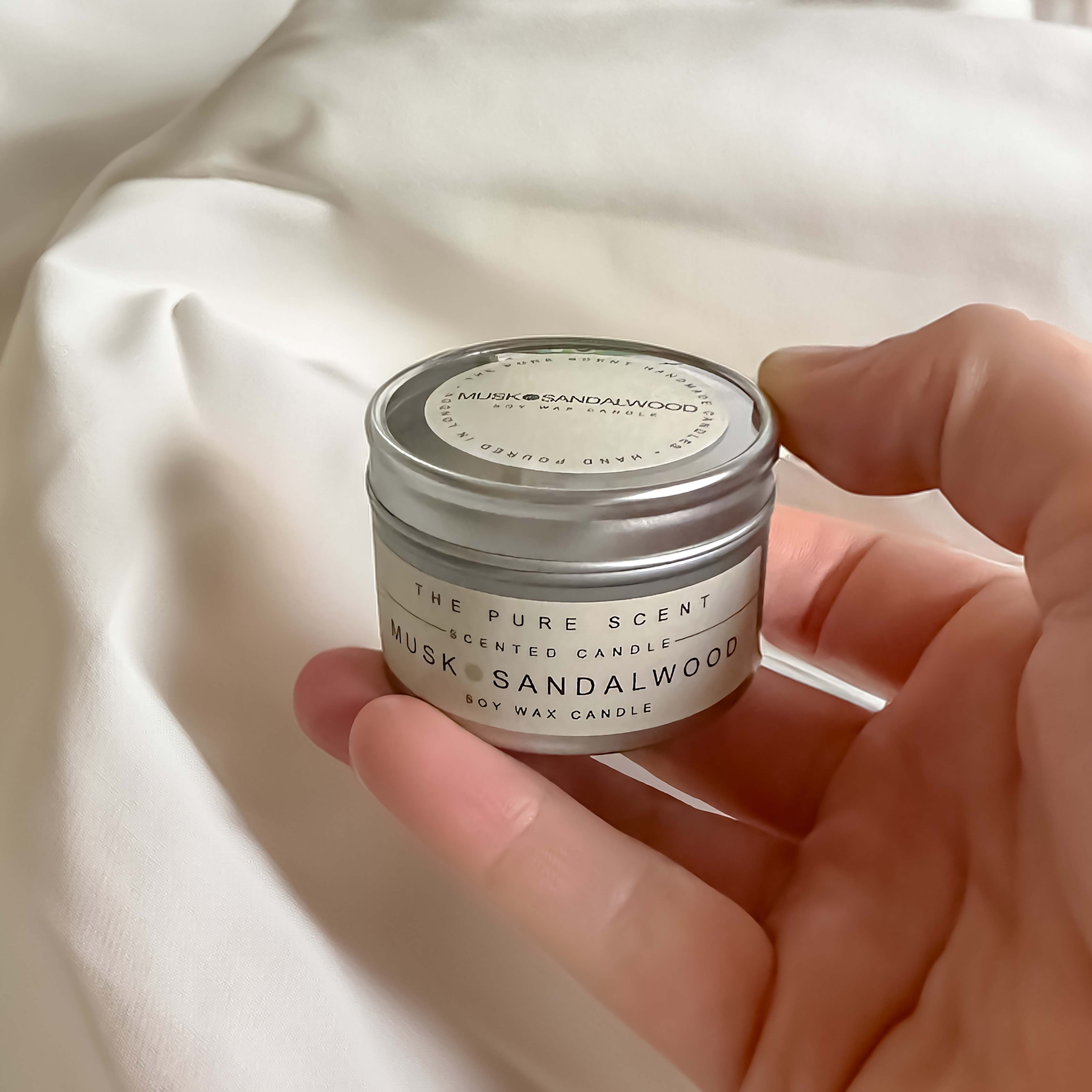 Musk and Sandalwood Candle – 50g Mini Soy Candle in a Tin