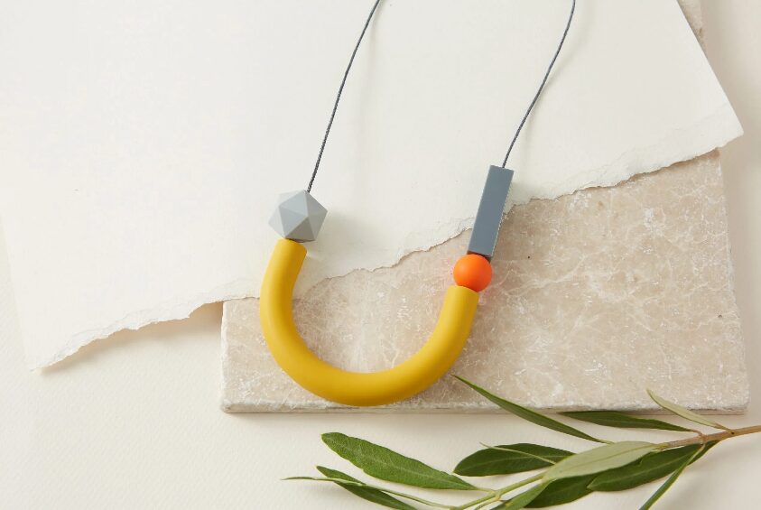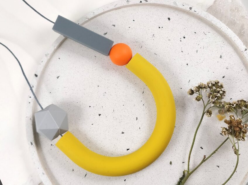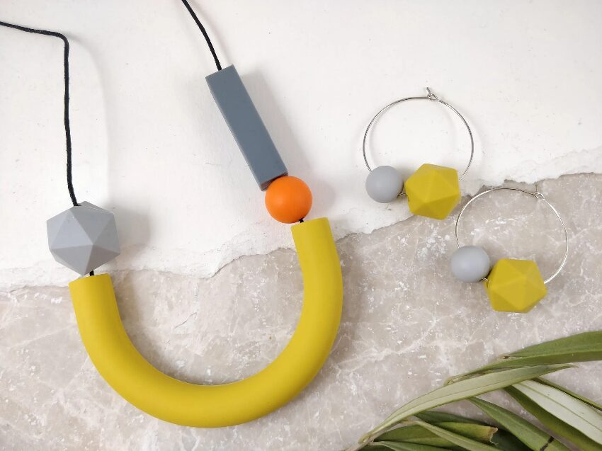 Mustard, Grey and Orange Silicone Necklace – Bold, Modern, and Stylish
