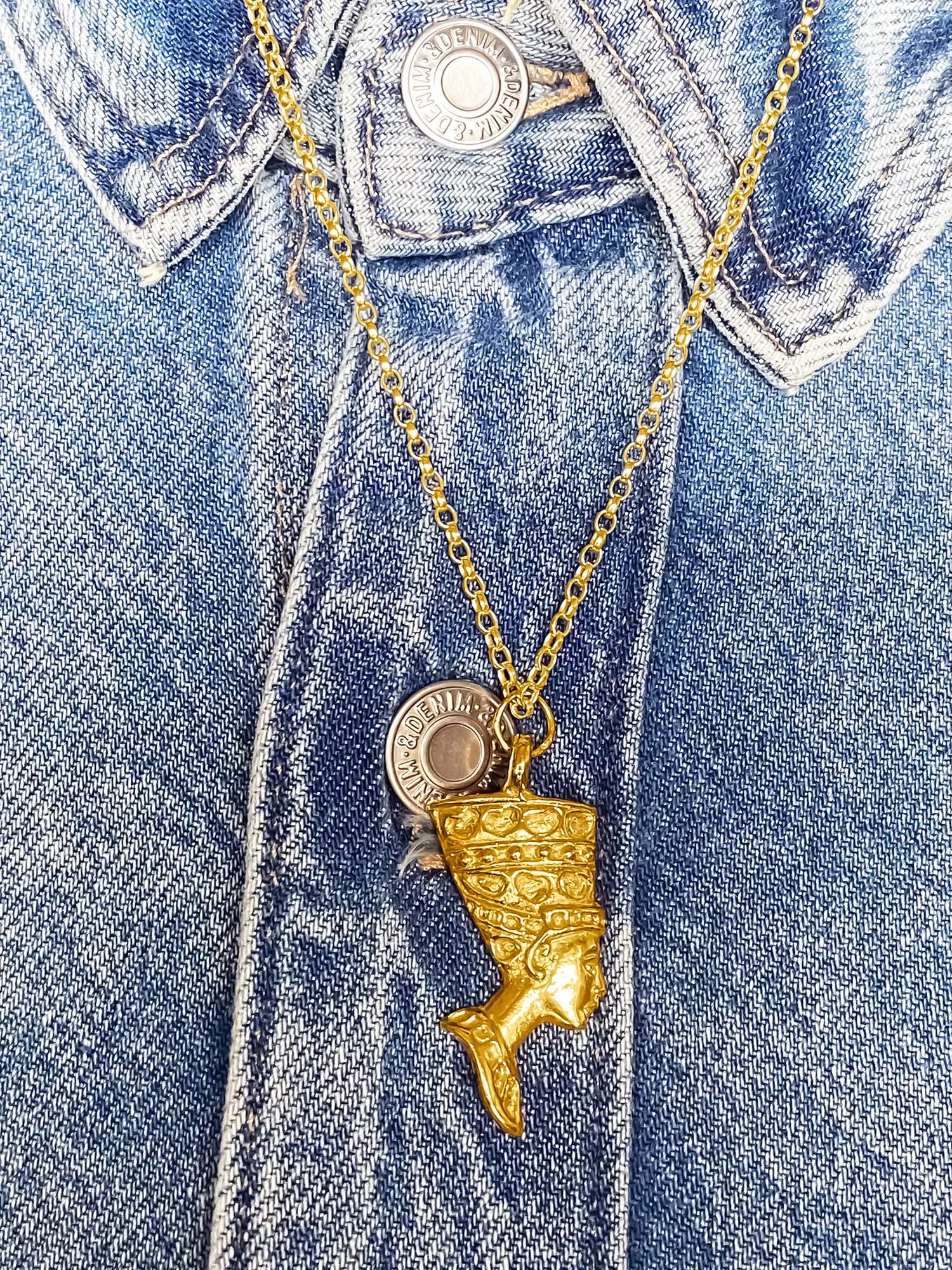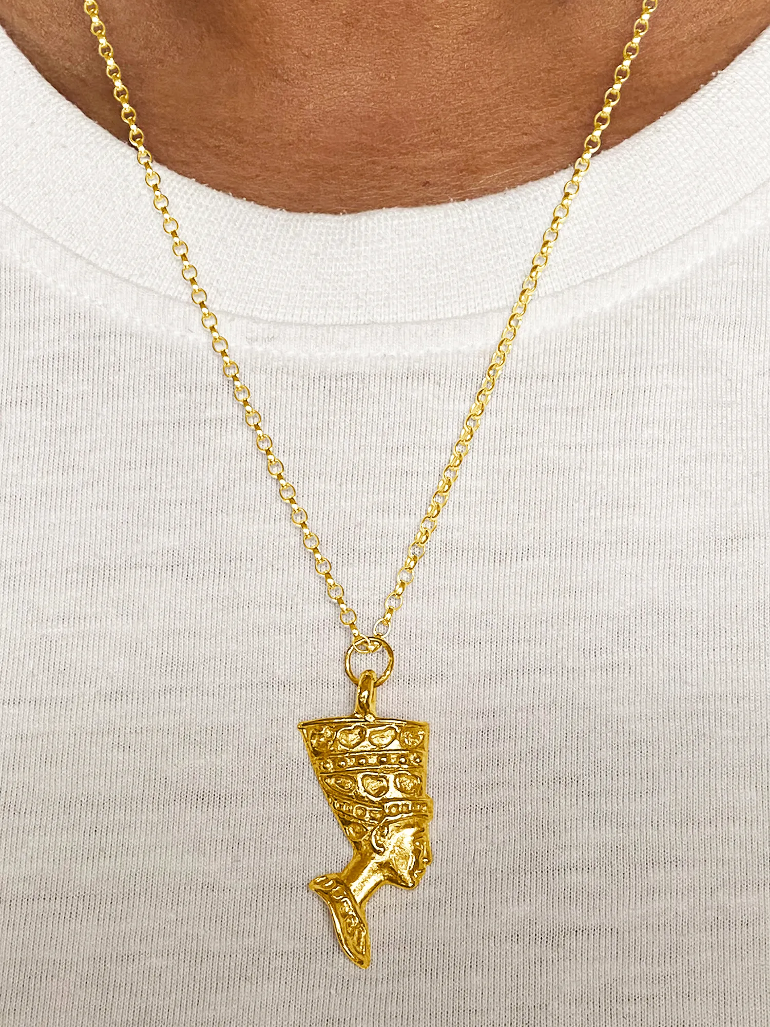 The Nefertiti Face Necklace is available on its own or paired with our signature Belcher chain – a classic, versatile style that enhances the piece’s historic charm. The chain is adjustable to 16, 18, or 20 inches, allowing for a personalised fit that suits any neckline or layering look.
