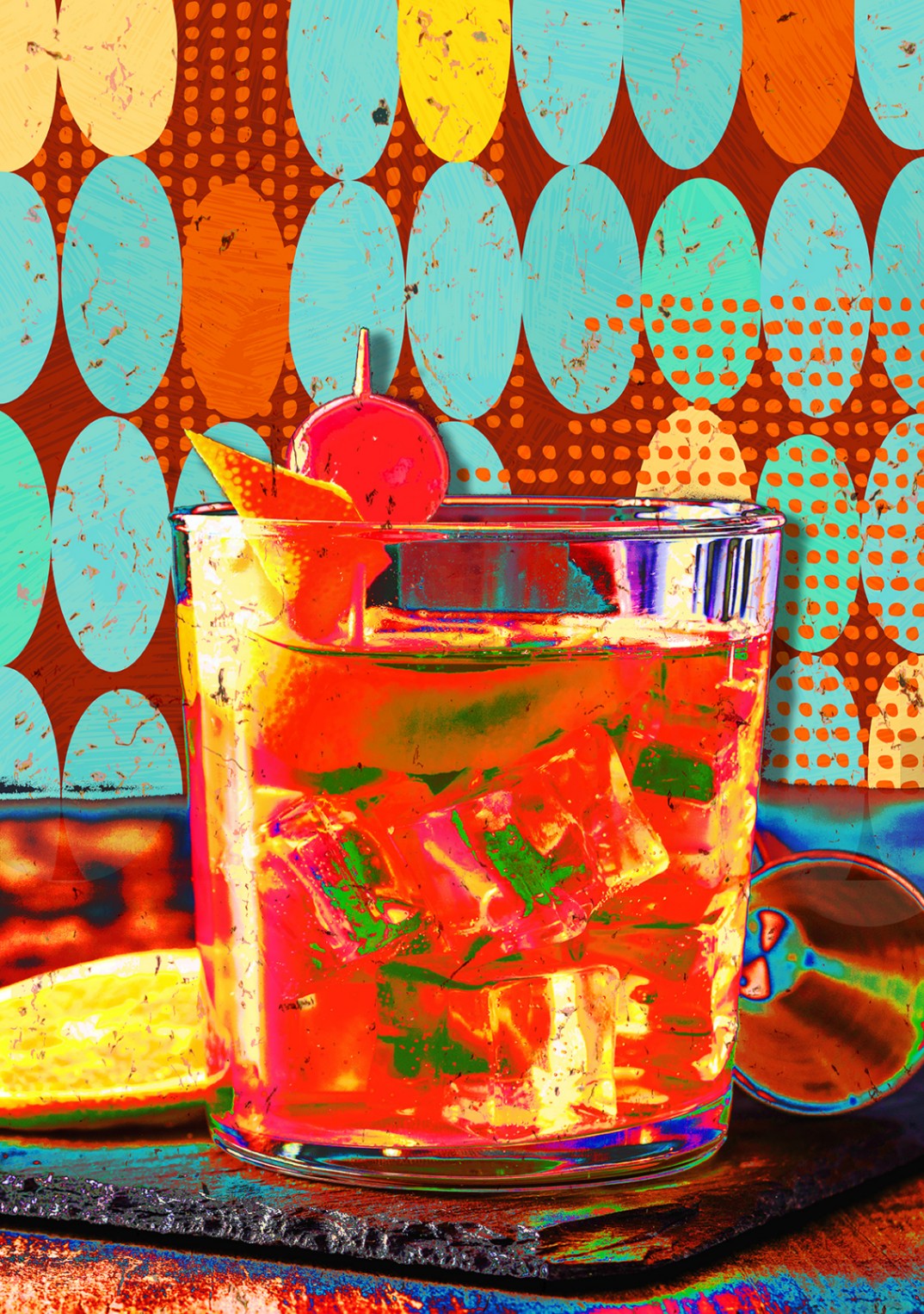 Style: Vintage-inspired, minimal yet bold cocktail wall art