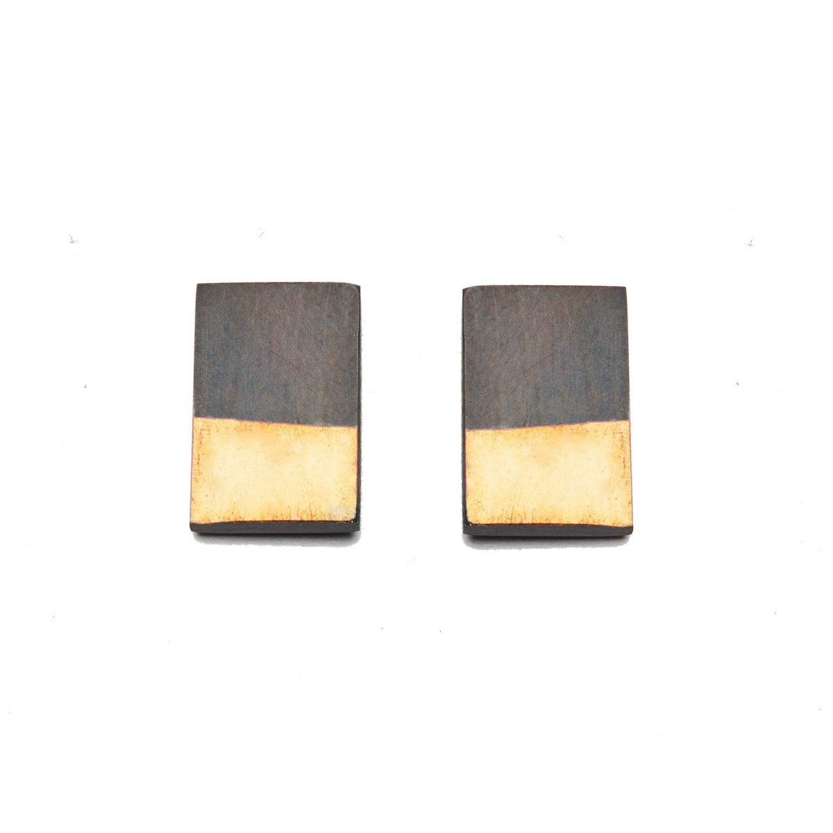 Minimalist oxidised silver and gold rectangle studs. Easy to wear everyday luxury.