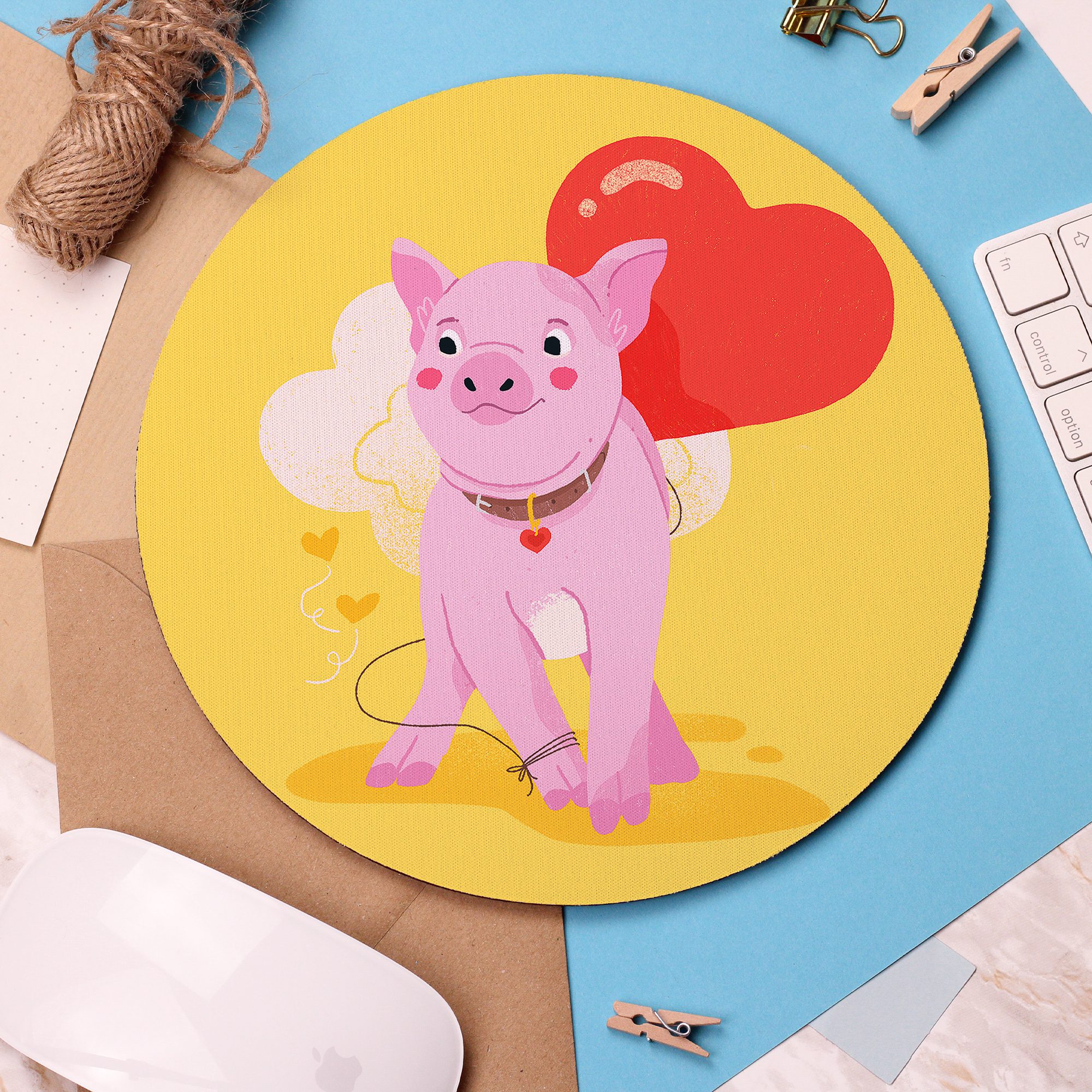 Add a colourful touch to your desk space with this beautiful “Piggy” Mouse Pad!