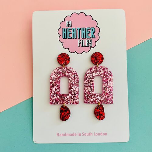 Add a pop of color to your jewelry collection with these stunning pink red earrings from Urban Makers. Handcrafted by skilled artisans, these earrings combine the warmth of red with the playfulness of pink, creating a bold and unique accessory for any occasion.