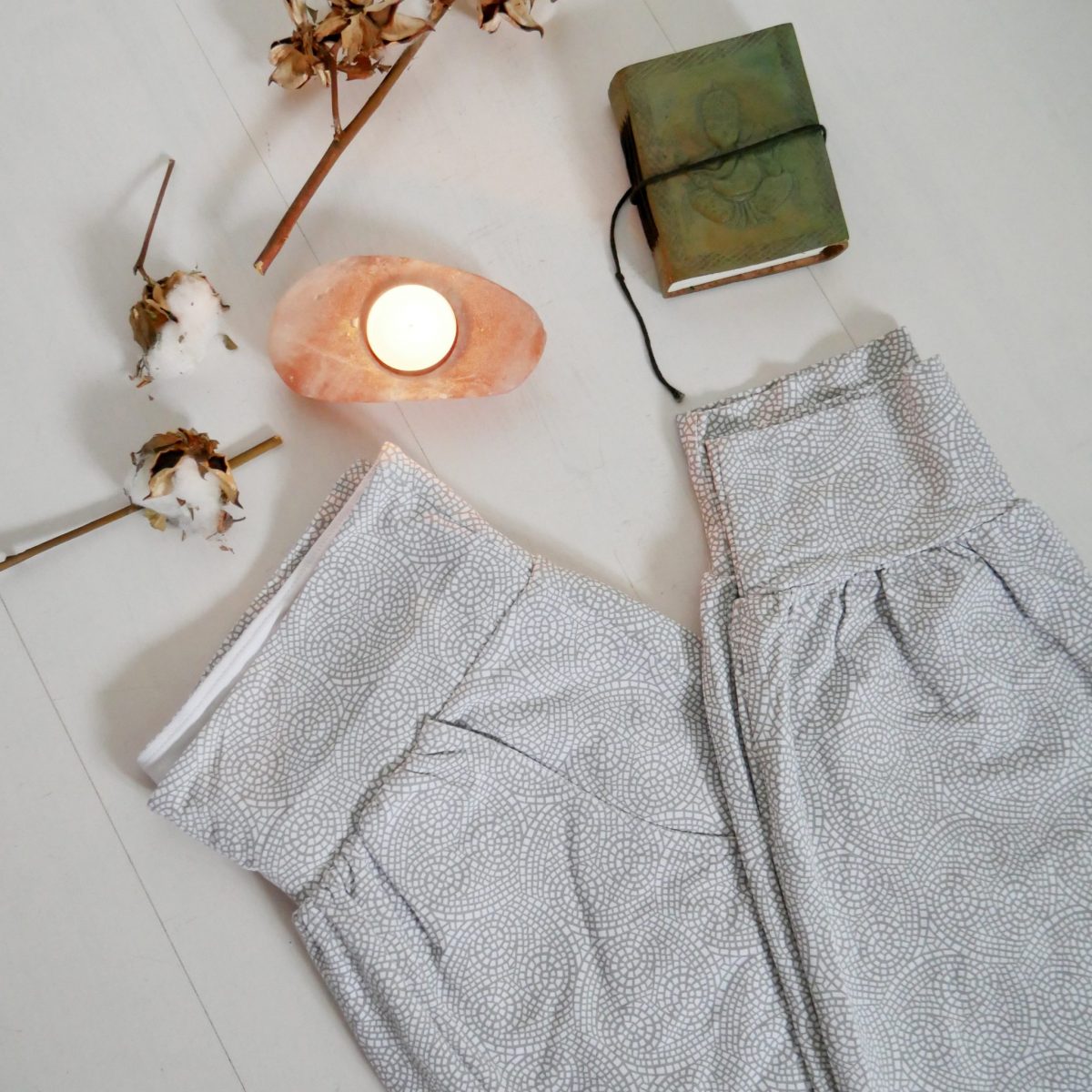These stylish harems have a beautiful subtle print with our signature grey chakra energy design. The elastic waistband gives a great fit and these harems also feature convenient front pockets. The baggy style of these pants makes them ideal for a relaxing yoga practice. These harems are equally perfect for lounging around the house.