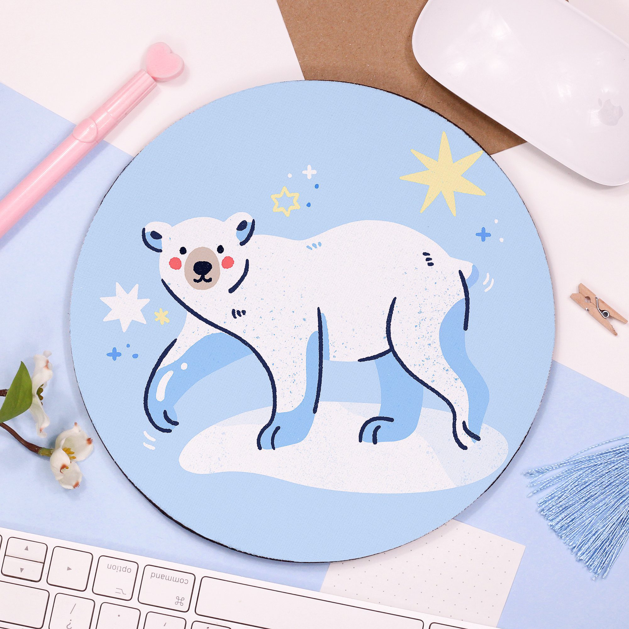 Polar Bear Mouse Pad, Arctic Animal, Bear Illustration, Cute Desk Gift, Stocking Fillers