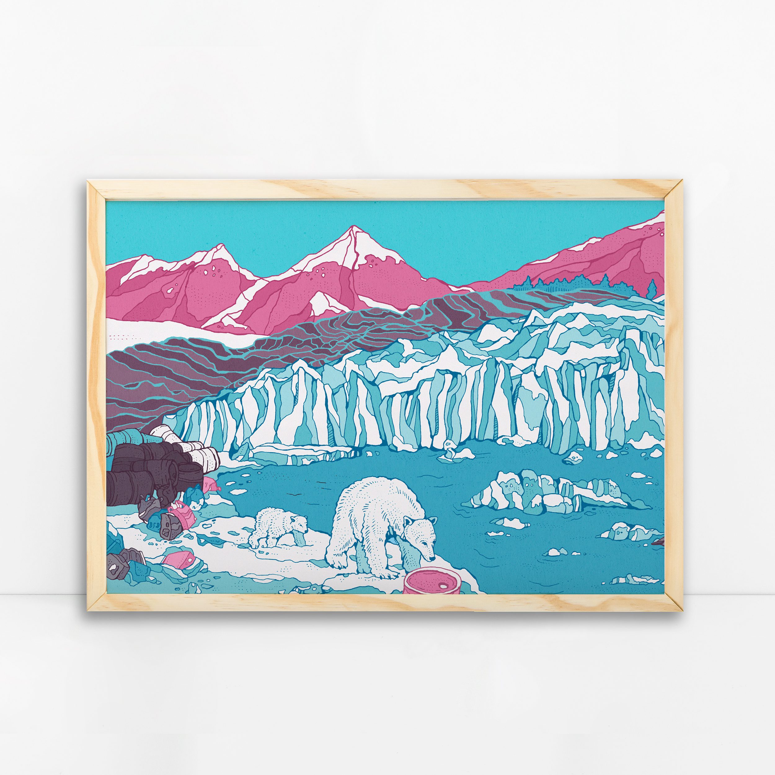This is a beautiful, high-quality digital print of my original ‘Polar Bears and Pink Mountains’ illustration.