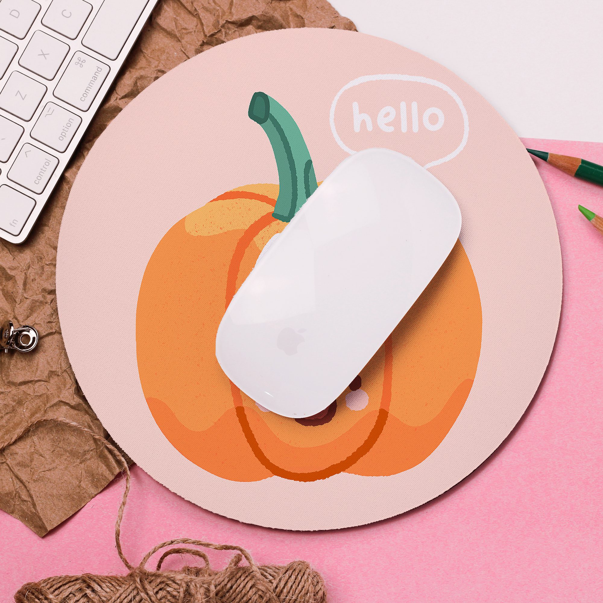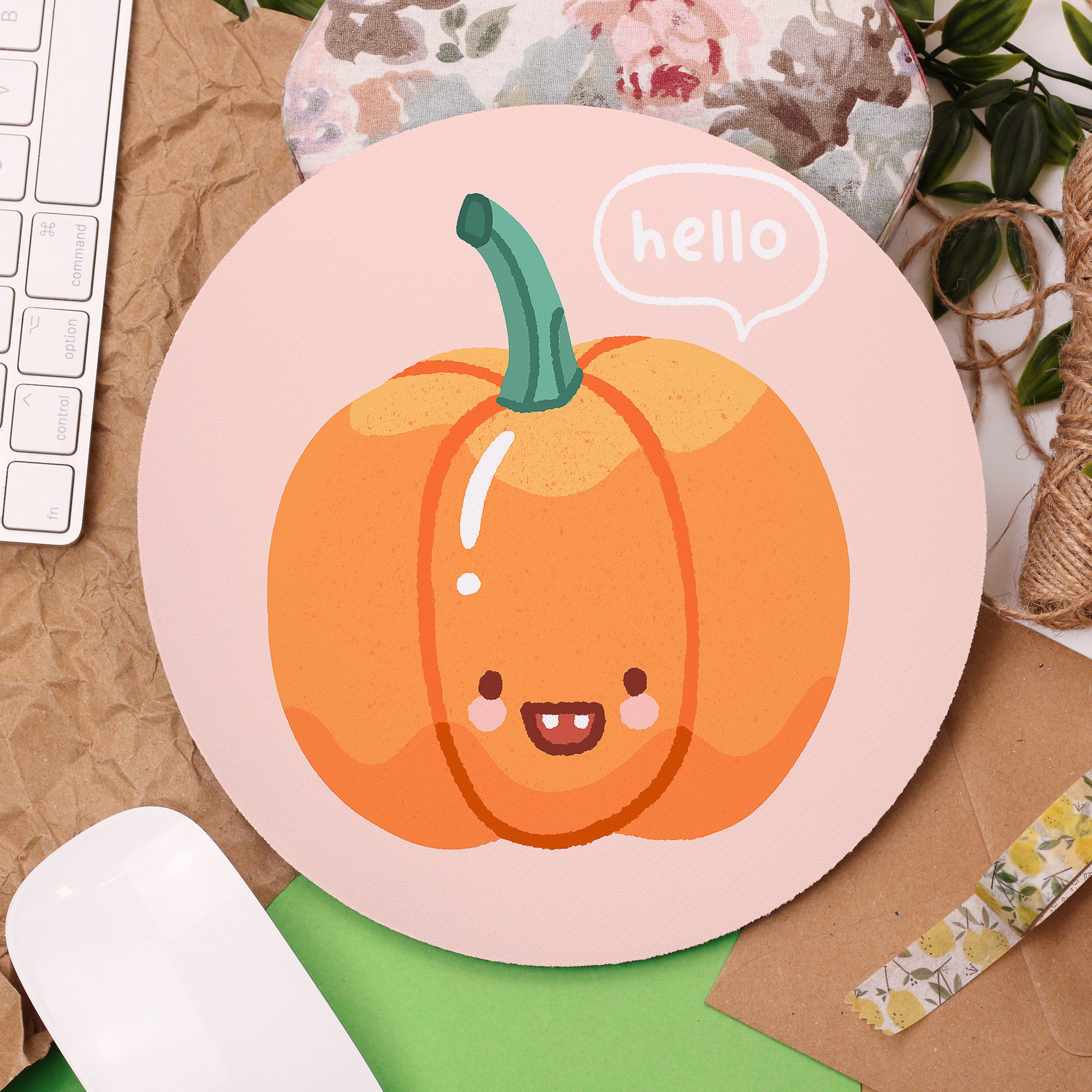 Add a colourful touch to your desk space with this beautiful ‘Pumpkin’ Mouse Pad!
