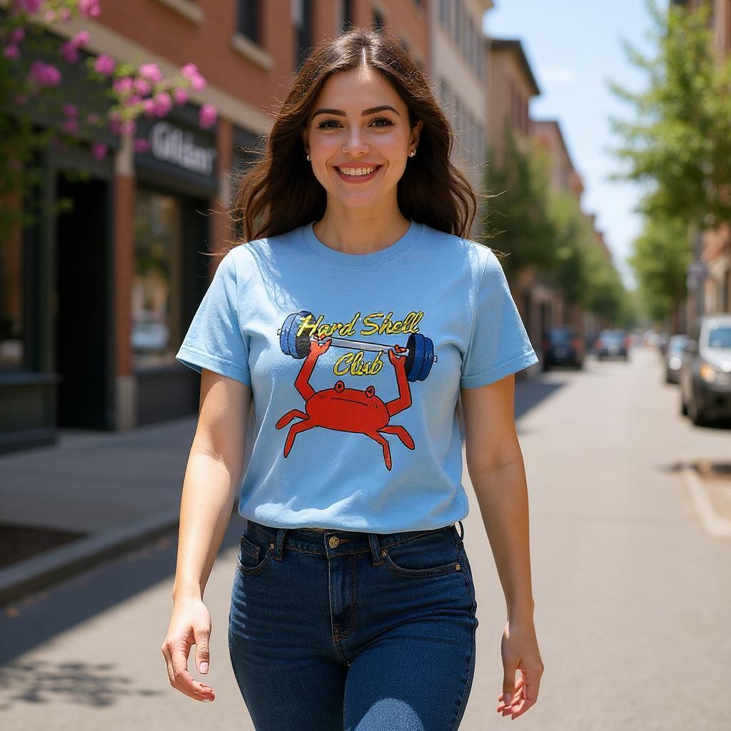 Small crab. Big lifts. Bring some seaside fun to your workouts with this funky crab tee and join the Hard Shell Club today. Perfect for fitness fans who love a bit of humour, this shirt features a colourful crab graphic, hard at work at the weights. This unisex tee keeps you comfortable and stylish. Made from soft, breathable cotton, this funny gym t-shirt offers a relaxed fit that suits all body types and workout styles. It’s an ideal gift for gym rats, fitness enthusiasts, or anyone who appreciates quirky animal designs. The perfect gift for gym lovers and crab lovers.