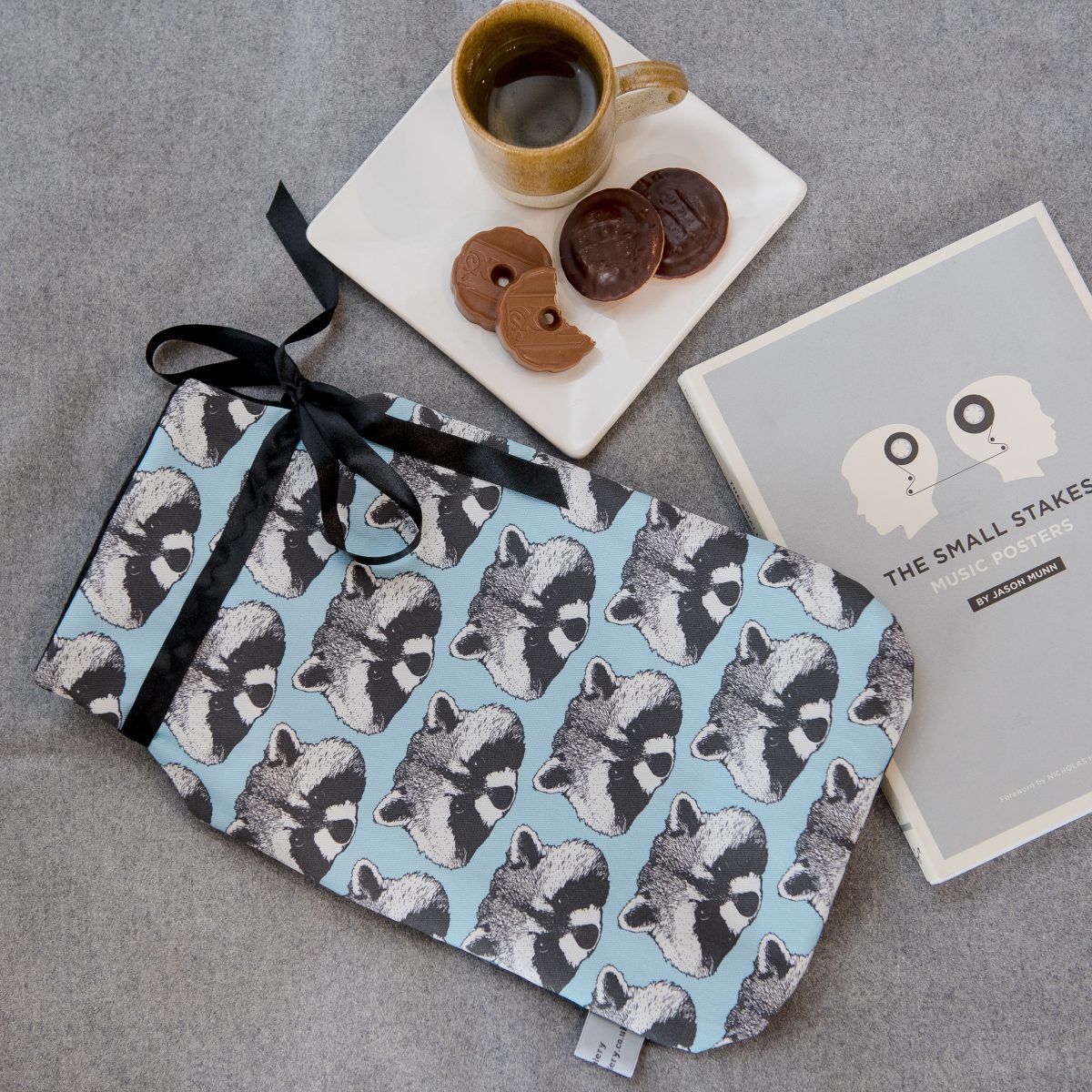 Cozy up this winter with our Raccoon Print Hot Water Bottle Cover, a charming and functional gift perfect for raccoon lovers and anyone who appreciates unique home décor. The design features an adorable illustrative raccoon print, digitally transferred onto medium-weight cotton drill fabric. Complemented by a fleece lining for extra warmth, the hot water bottle cover combines comfort and style, making it a thoughtful choice for chilly nights, “get well soon” gifts, or Christmas presents.