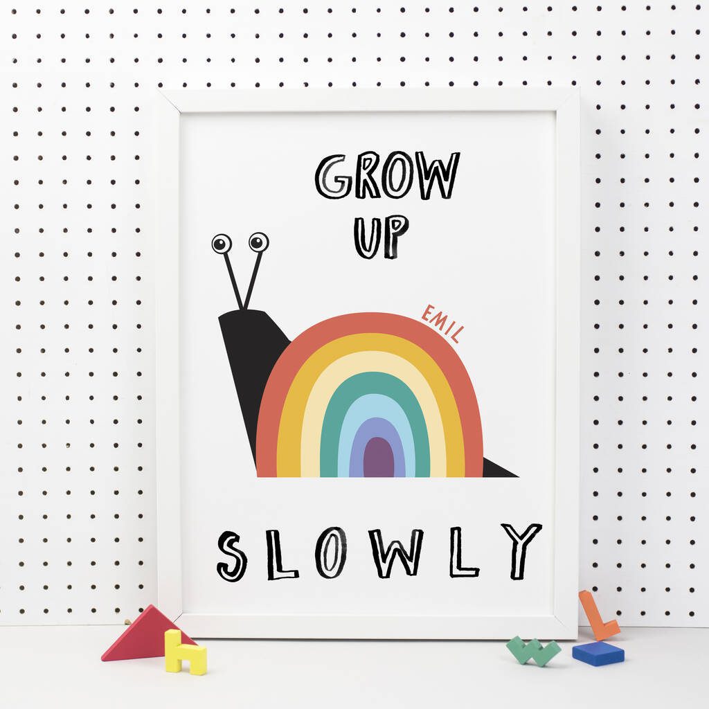 Our popular Grow up slowly print is now available with a rainbow snail!