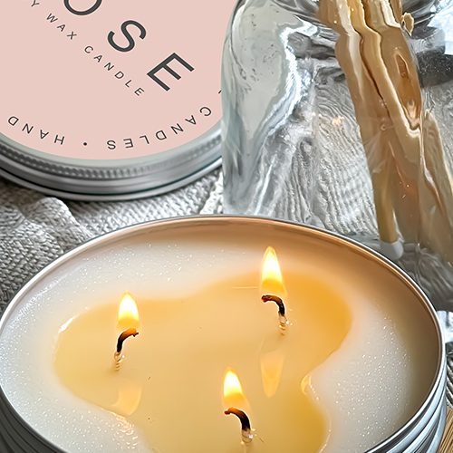 Rose 3 Wick Soy Candle in a Tin