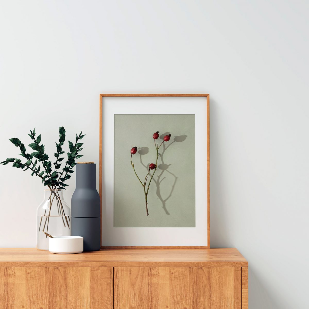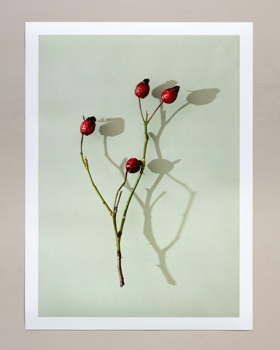 Add a splash of colour with this unique and vibrant print inspired by an Aboriginal proverb. The rose cutting is balanced to create a floating effect with a strange and beautiful shadow and the red and green colours provide a striking contrast.