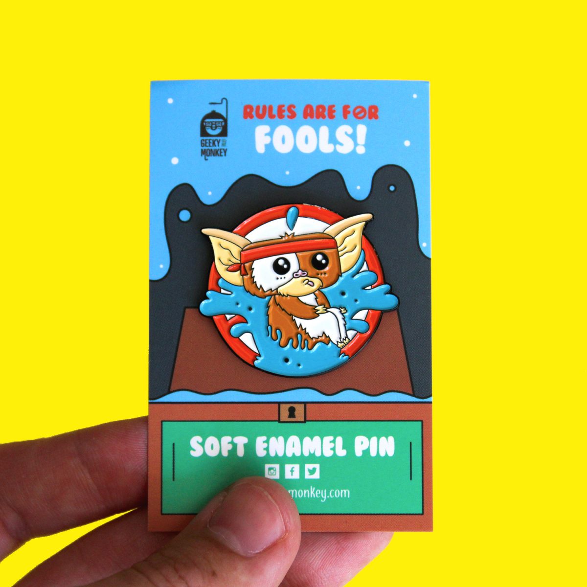 Everyones favourite mischievous Mogwai, “Gizmo” thinks Rules are for Fools. This cute soft enamel pin is a homage to his mischievous ways.