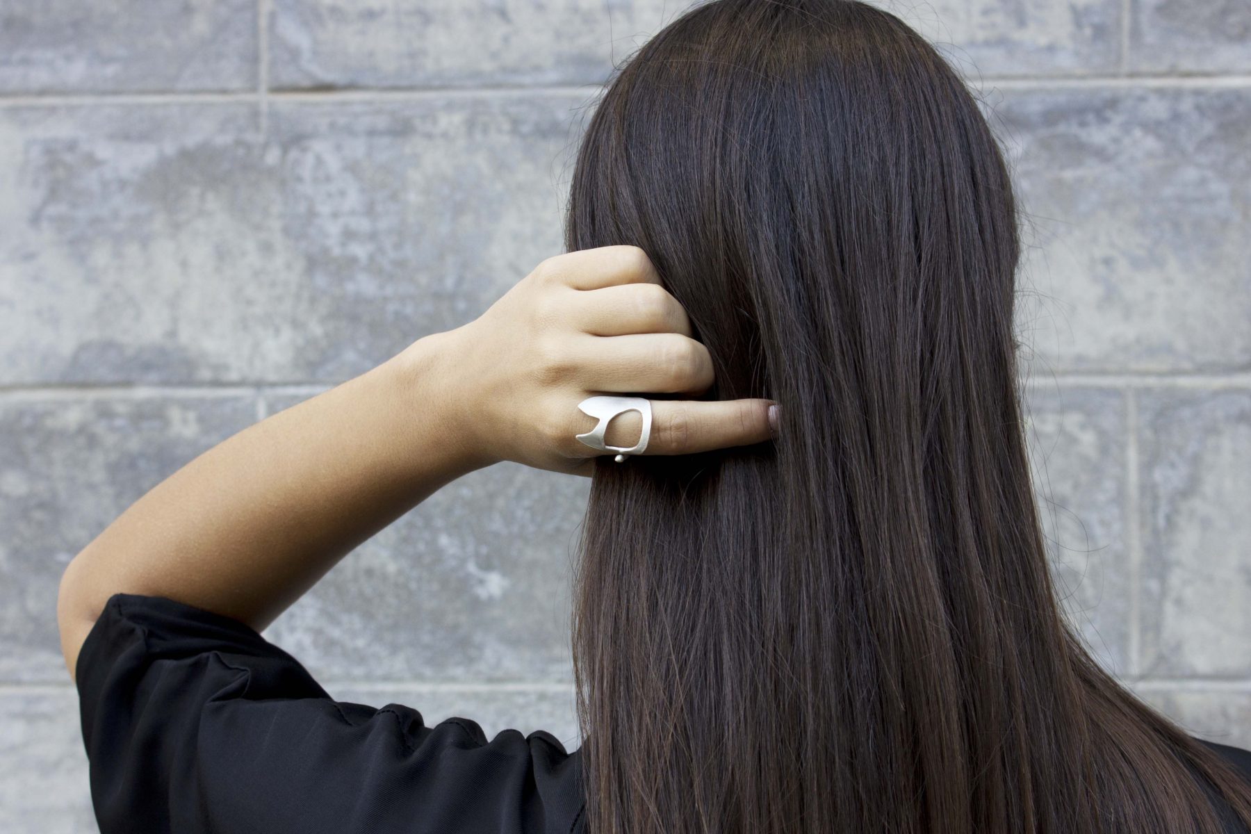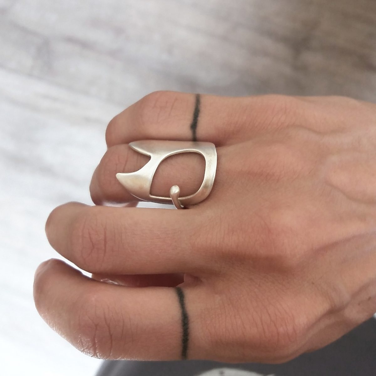 This handcrafted ring is perfect for those who love modern, avant-garde jewelry. Its clean lines and distinctive design make it an ideal statement piece, whether worn alone or stacked with other rings. The sterling silver construction ensures durability and a polished finish that complements both casual and formal outfits.