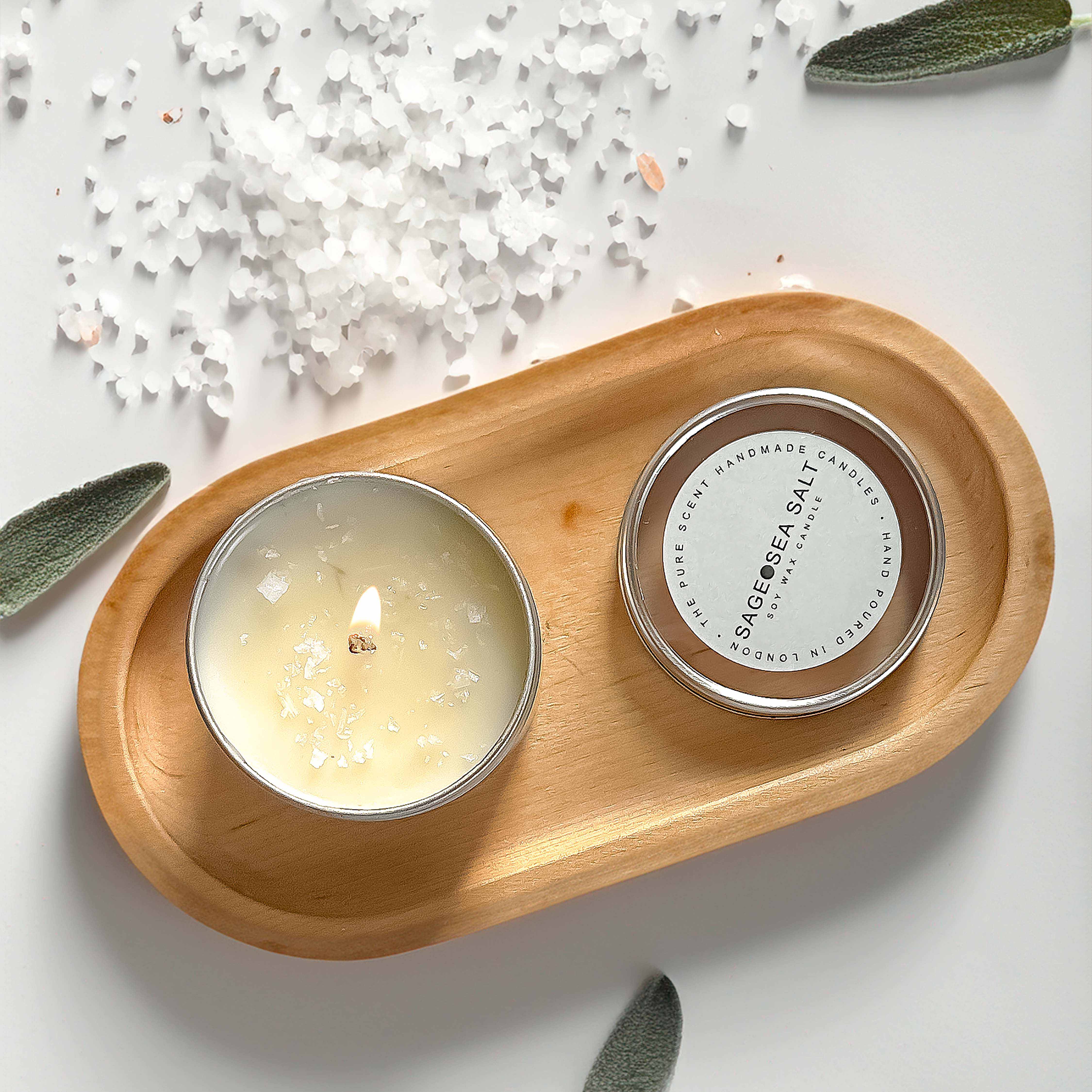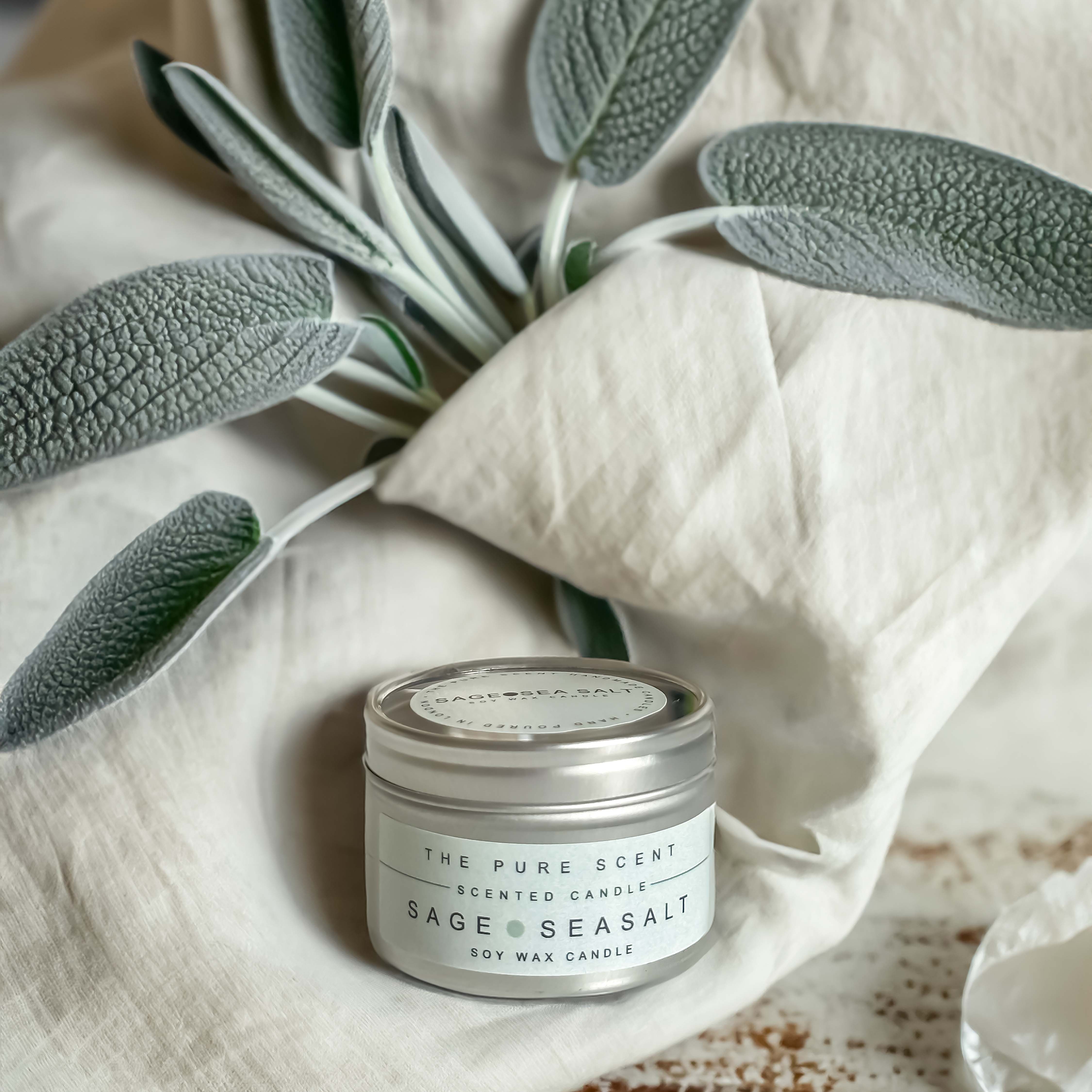 Sage and Sea Salt Candle – 50g Mini Soy Candles in a Tin