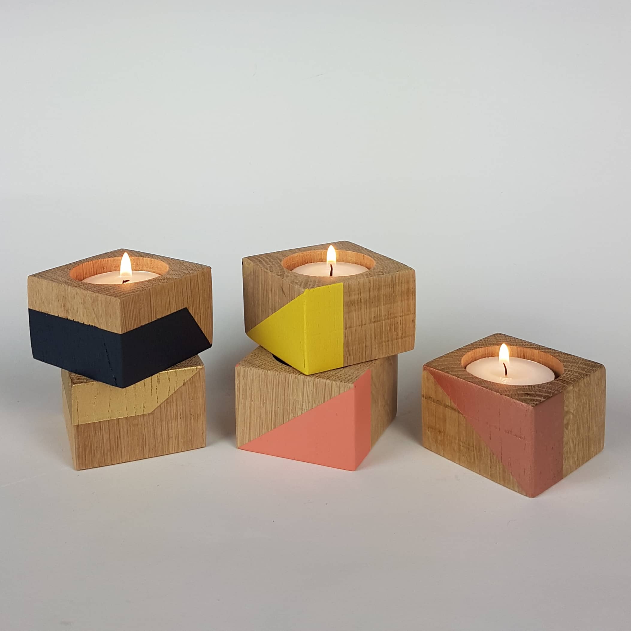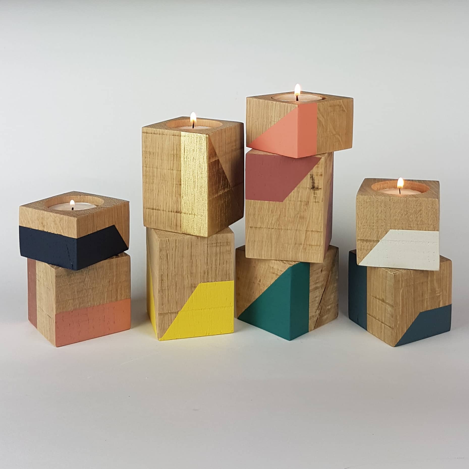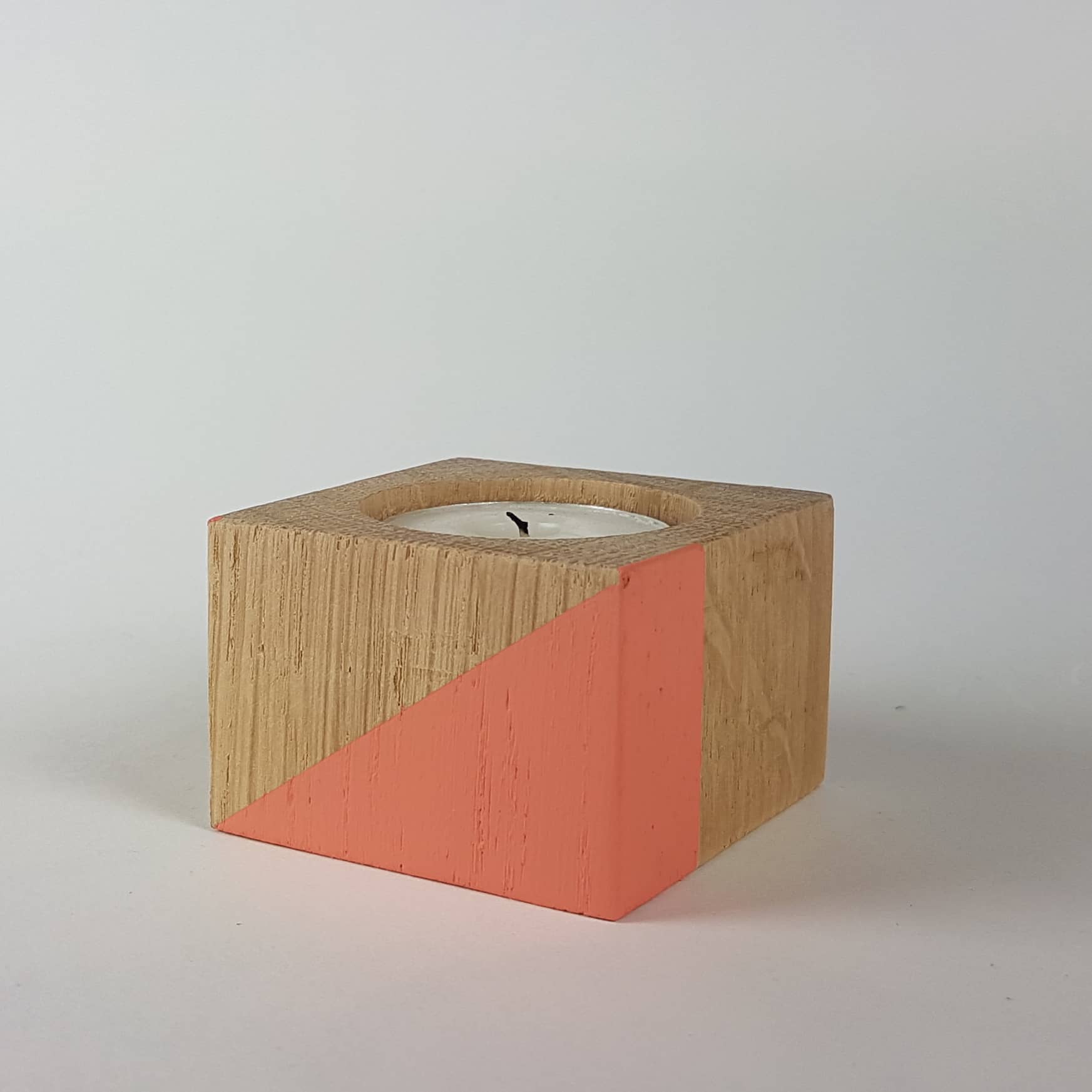 Add warmth, color, and character to your home with our handcrafted tealight candle holders, made from 4cm blocks of salvaged wood. Each cube tells its own story—bearing the unique marks, grain, and texture of its past life. Lovingly sanded, cut, drilled, painted, and finished by hand, these eco-conscious pieces are made to hold a standard tealight.