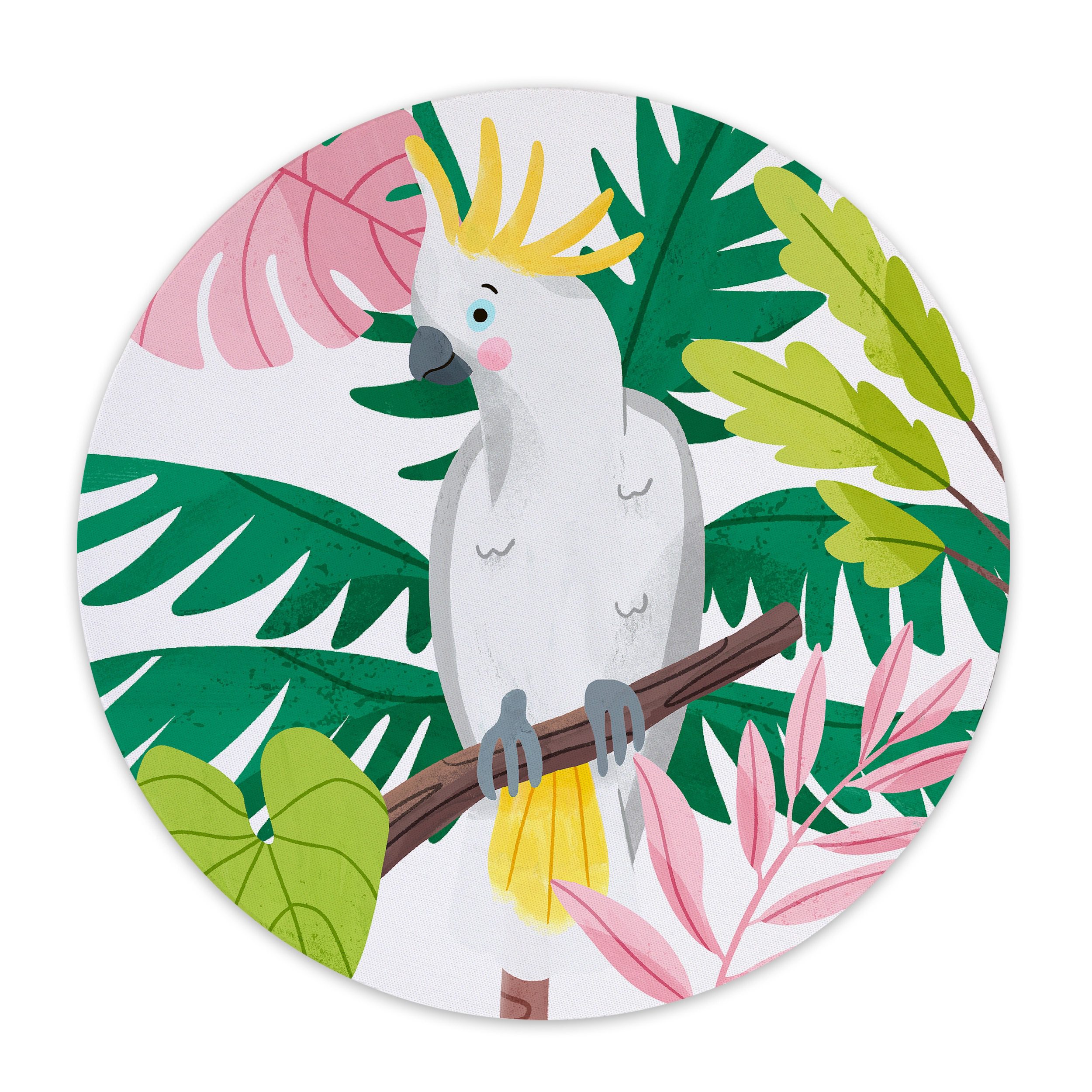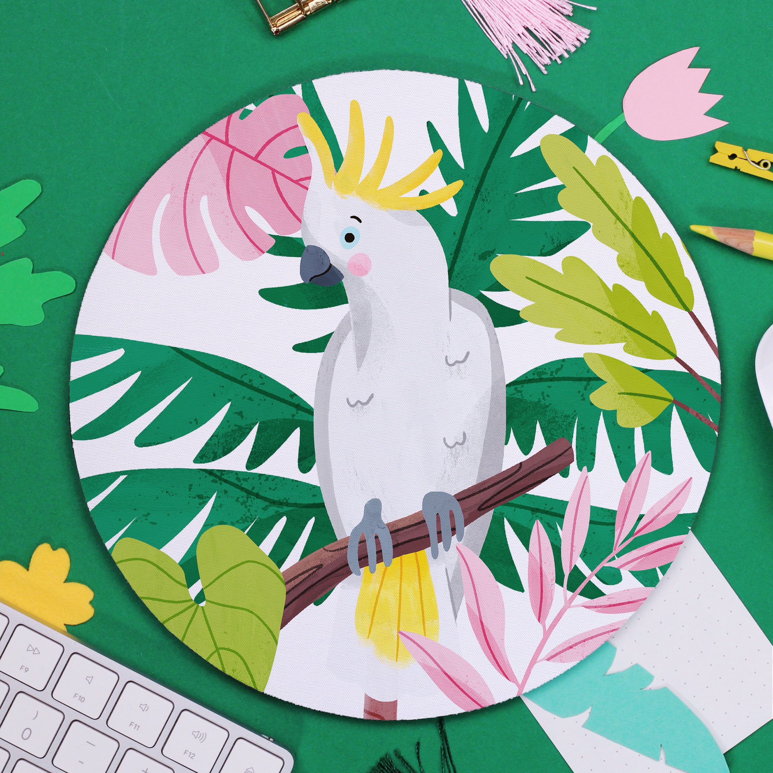 Cockatoo Mouse Pad, Jungle Parrot illustration, Cute Desk Accessory, Exotic Plants