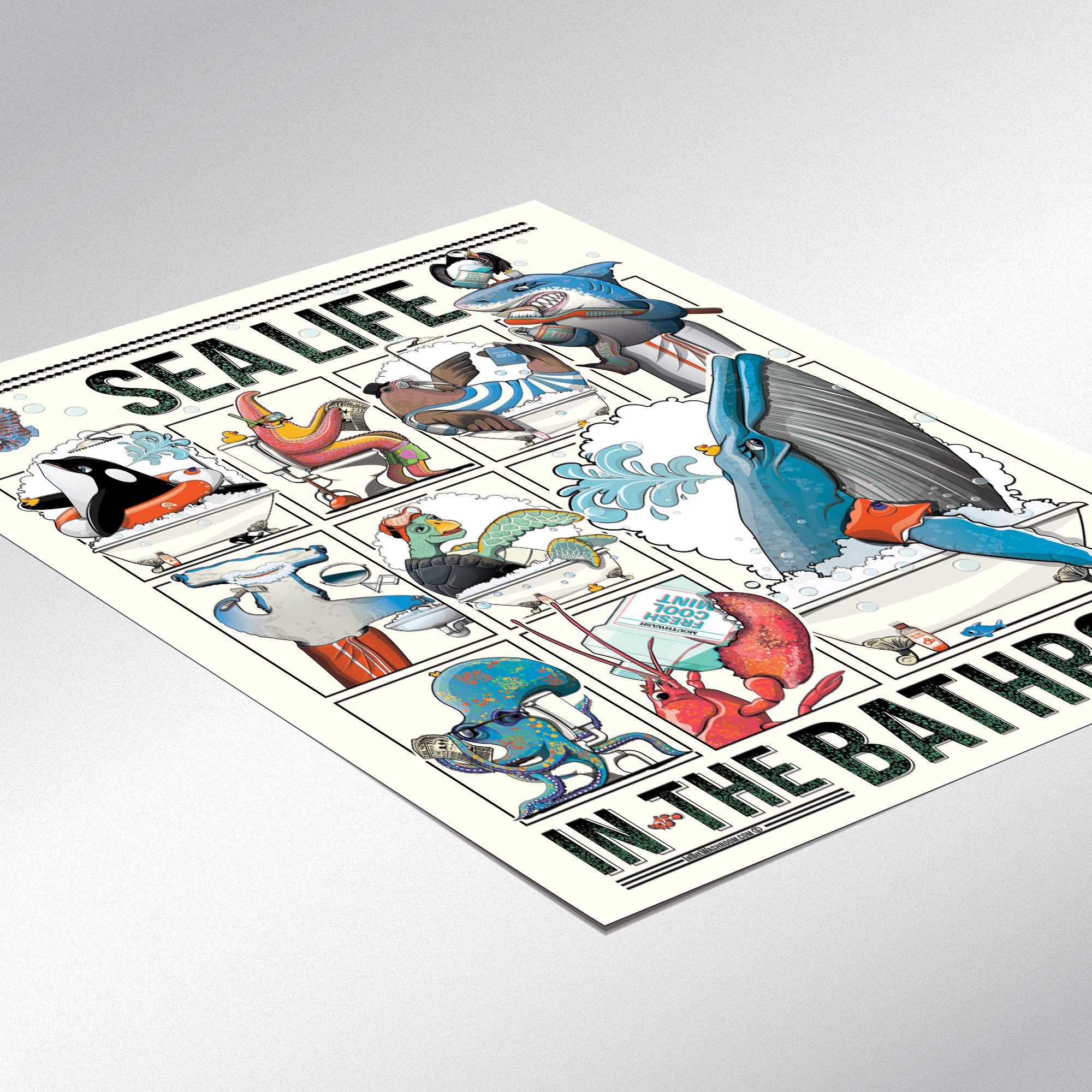Funny artwork for your WC, guest bathroom or en suite. A little bit of sea life for your bath wall. We have many more ocean animals icons on the toilet and in the bath.