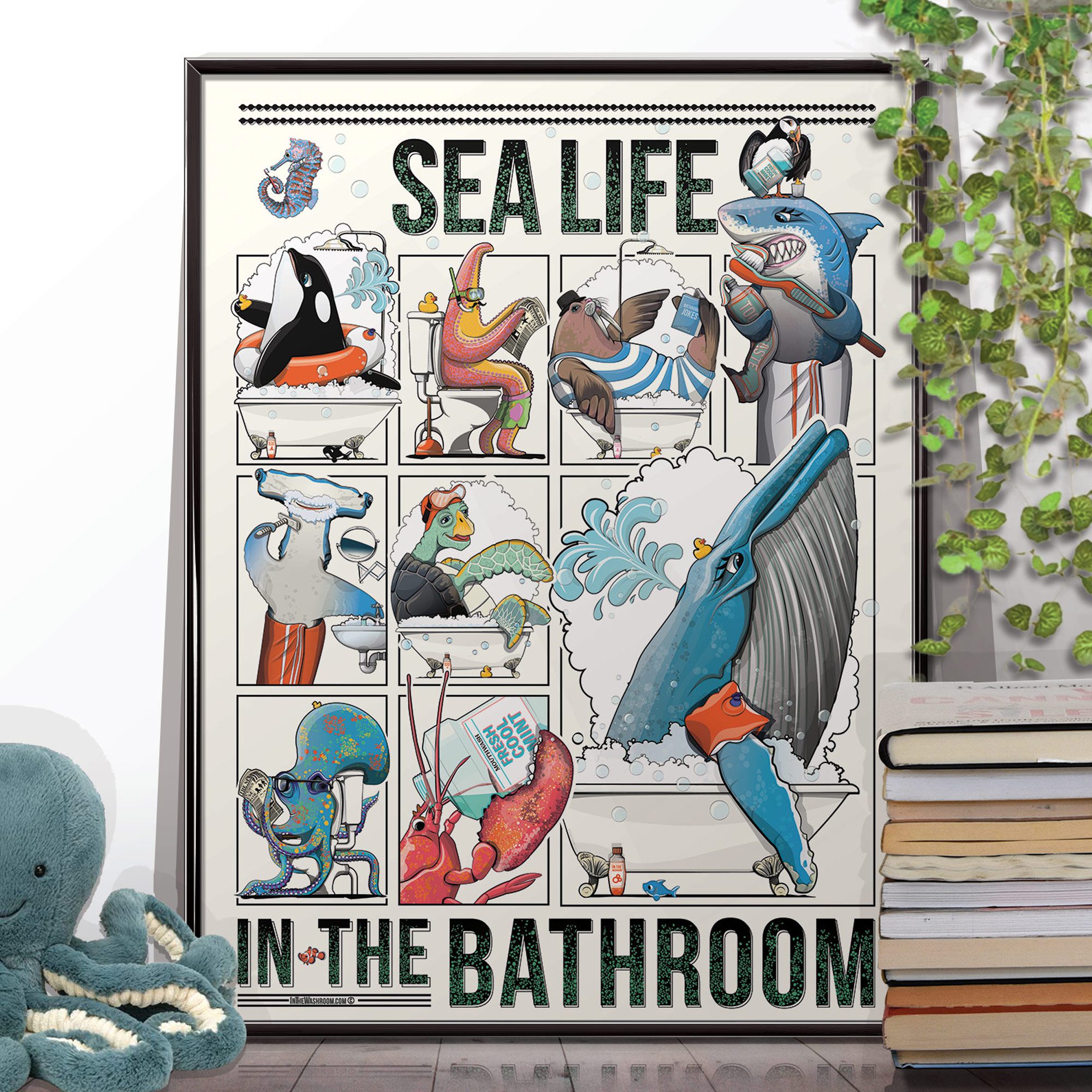 Sea life Animals in the Bathroom, bathroom print, these Ocean animals are perfect to encourage you to get ready in the morning or for your little ones to encourage them on the toilet when they’re doing their poo!