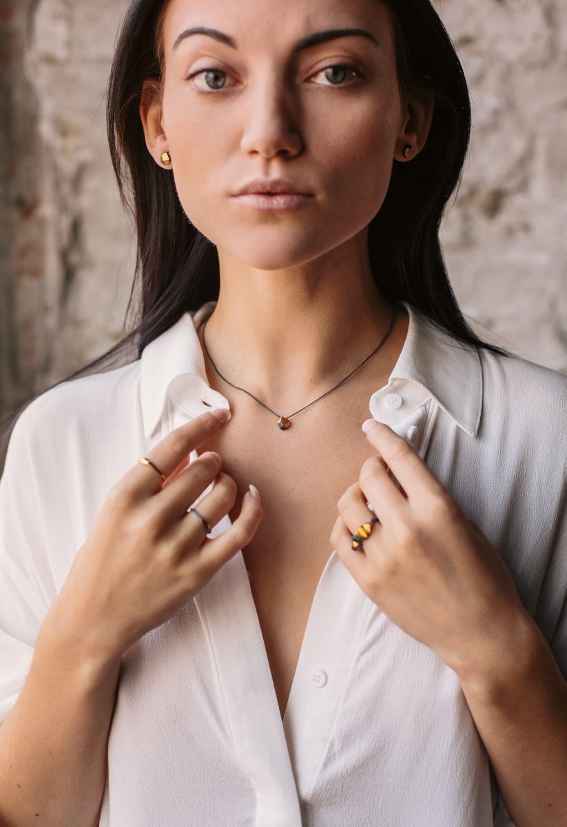 The geometric design looks great with the bold contrast of oxidised silver and gold, perfect for everyday wear.