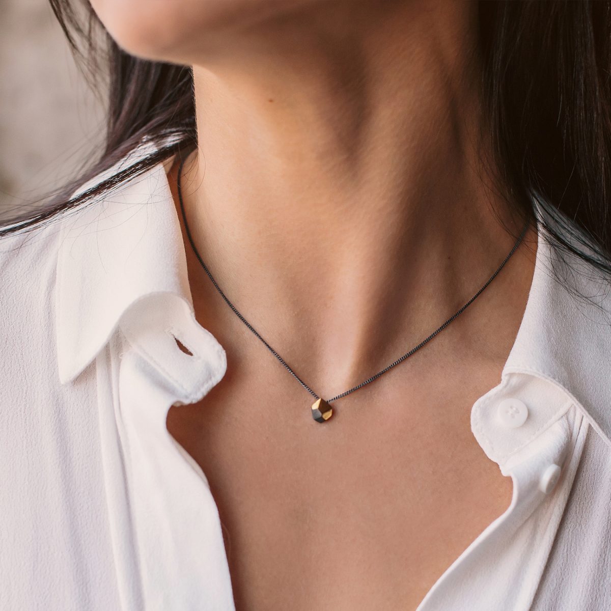 This dainty necklace is handmade in sterling silver, using a Japanese technique of fusing 24ct gold to silver.