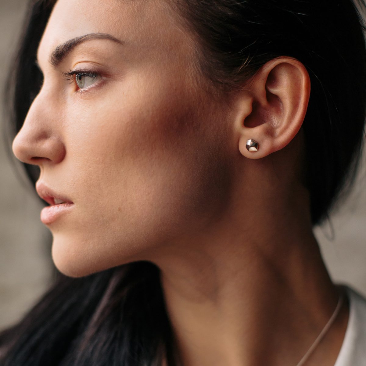 This faceted earring is simple in design but distinct in style, perfect for everyday wear.