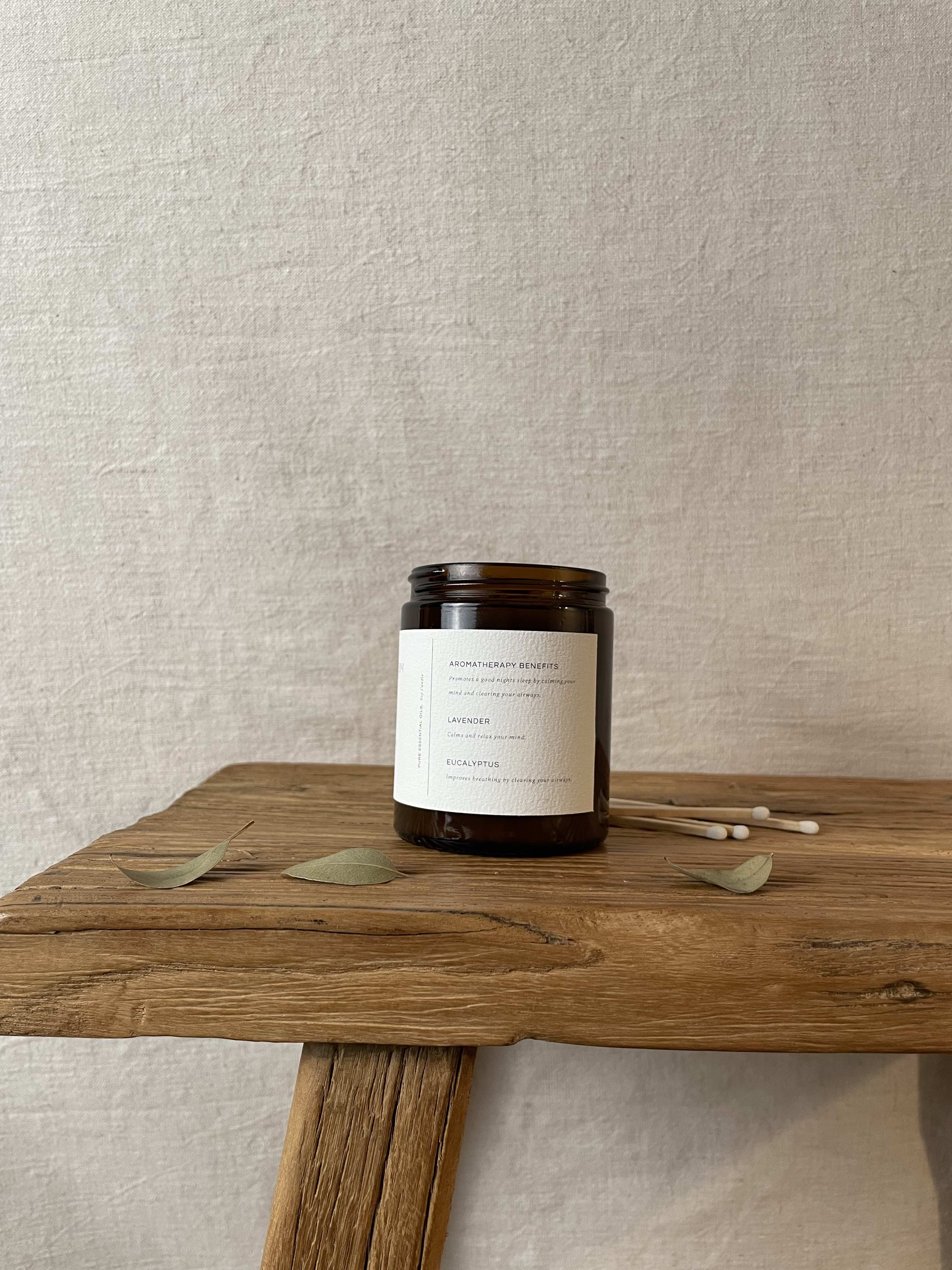 Made of soy wax and essential oils, selected for their aromatherapy benefits. Hand poured in small batches.