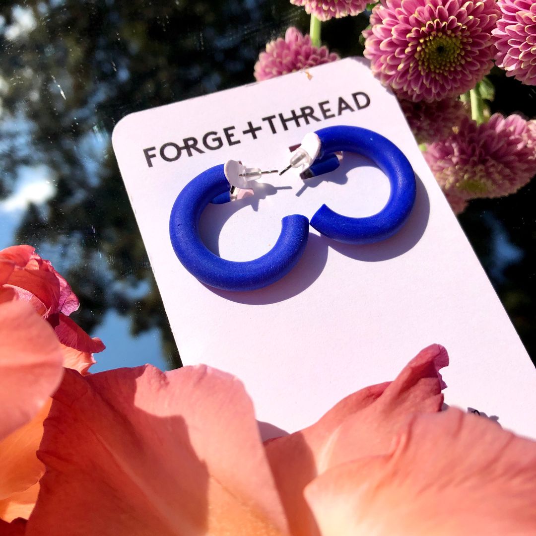Bold blue lightweight hoop earrings made from polymer clay with hypo-allergenic surgical steel posts