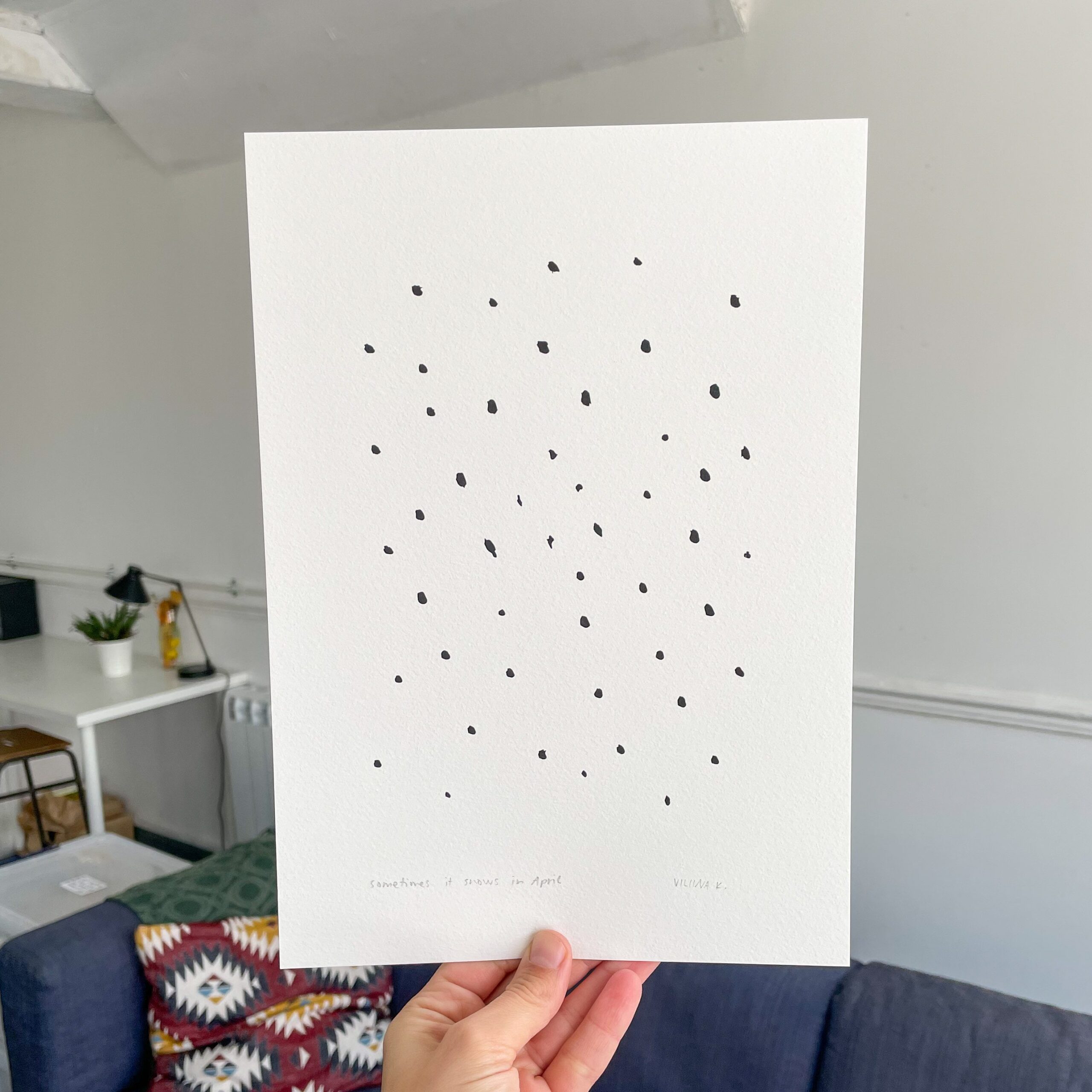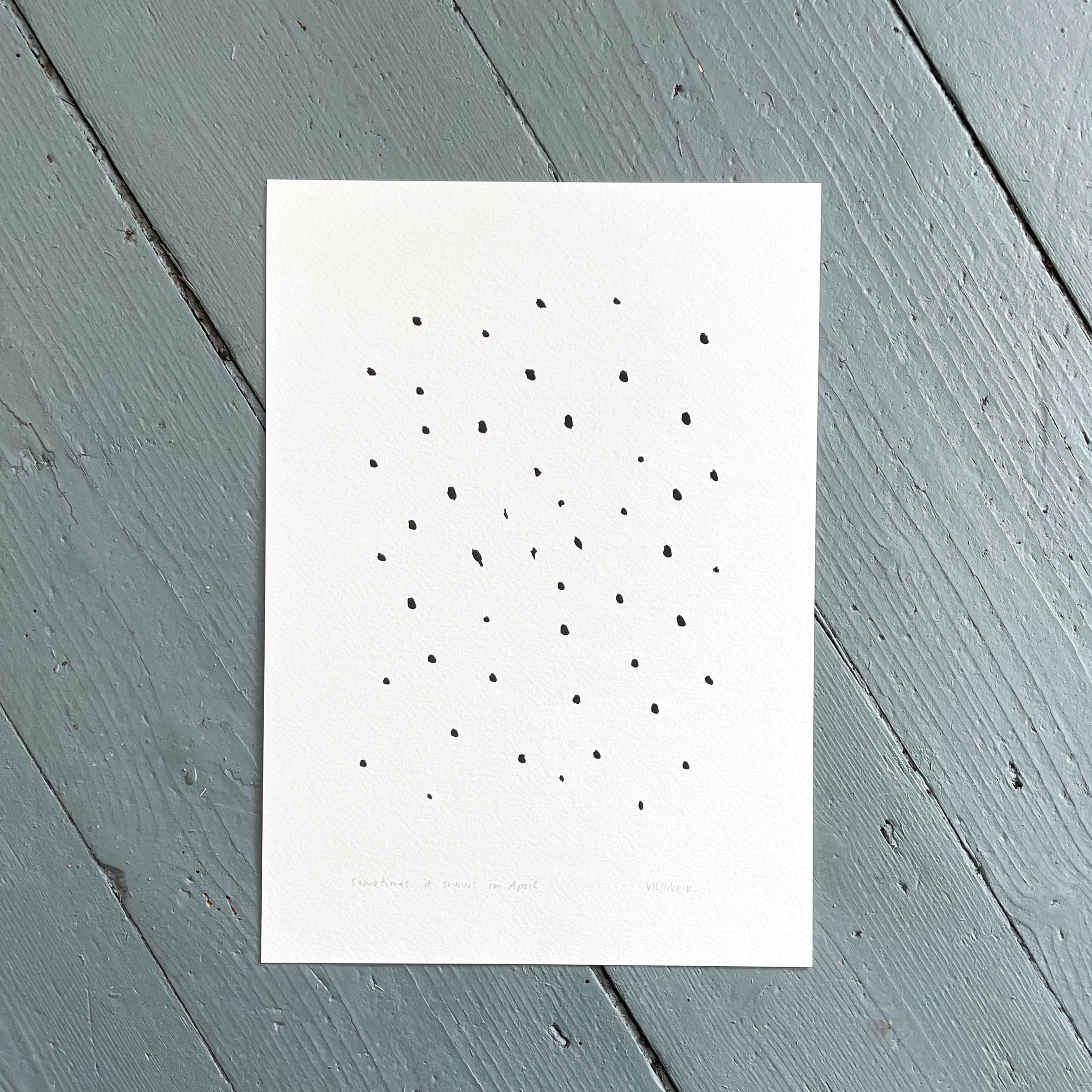 The original painting was a 50th birthday present for a Prince fan who loves the song “Sometimes it snows in April”. That’s why there are exactly 50 snowflakes in the print!