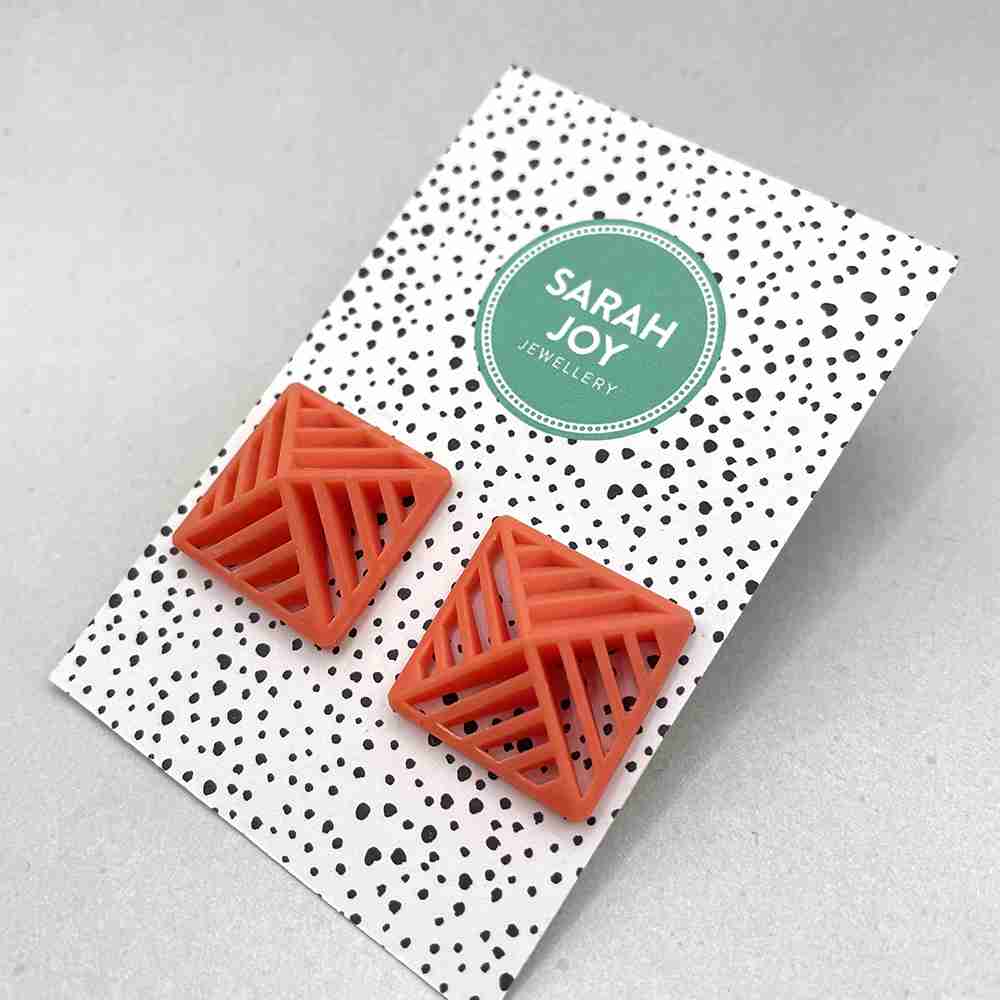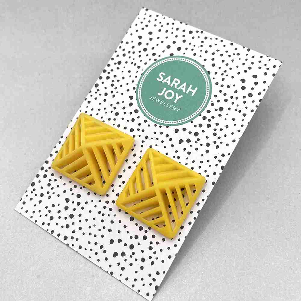 Handmade in the UK, the Square Stripe Stud Earrings offer sustainable fashion with an artistic flair. The plant-based resin used in these earrings highlights a commitment to eco-friendly materials, making them an excellent choice for environmentally conscious fashion enthusiasts.