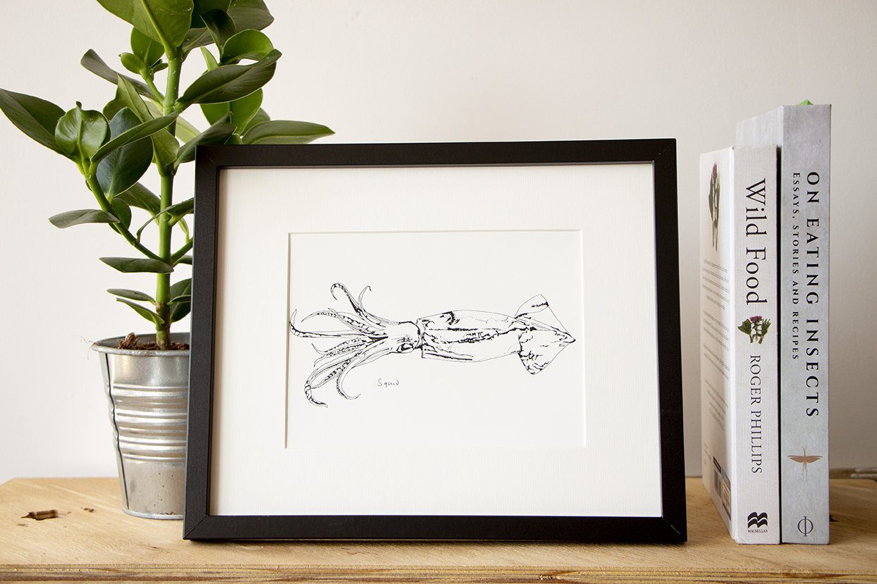 Bring the beauty of British marine life into your home with this stunning Little Squid print. Part of a growing collection of black & white screen-printed illustrations, this piece celebrates the fish and sea creatures found around the UK’s coasts.
