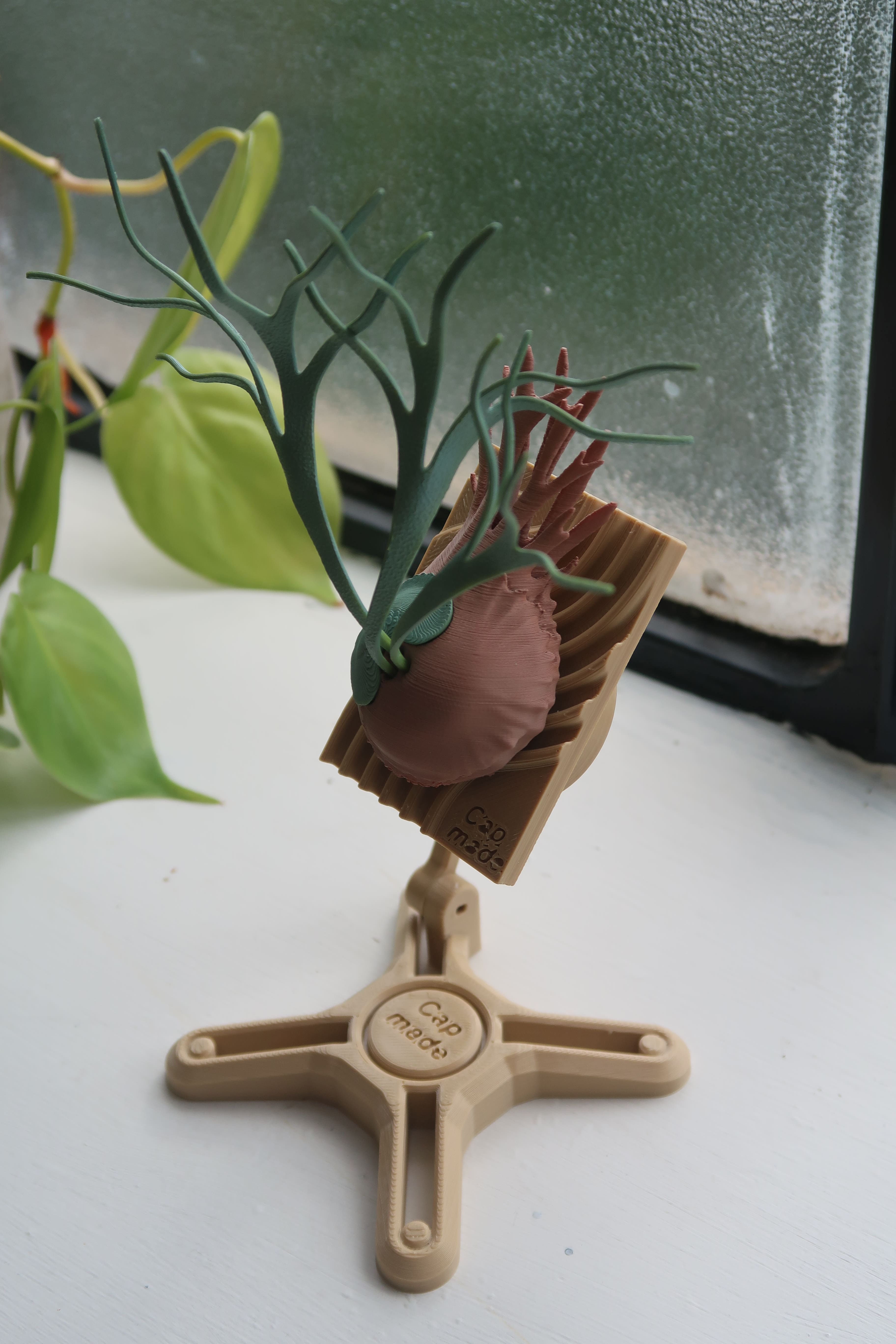 This beautifully crafted 3D-printed Upright Silver Staghorn Fern model, designed by a Chinese artist, captures the intricate details and unique structure of the Platycerium veitchii ‘Lemoinei’.