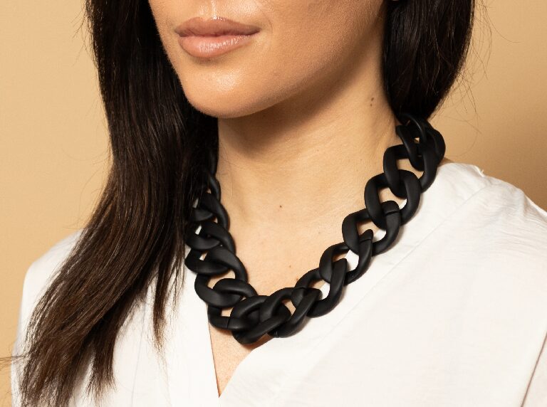 These modern geometric necklaces are the perfect gift for her. They feature chunky matte large acrylic chain links and a big gold colour lobster clasps to close the necklace up. Bold and with a great texture, these chunky bead necklaces make beautiful statement pieces while also being lightweight and comfortable to wear.