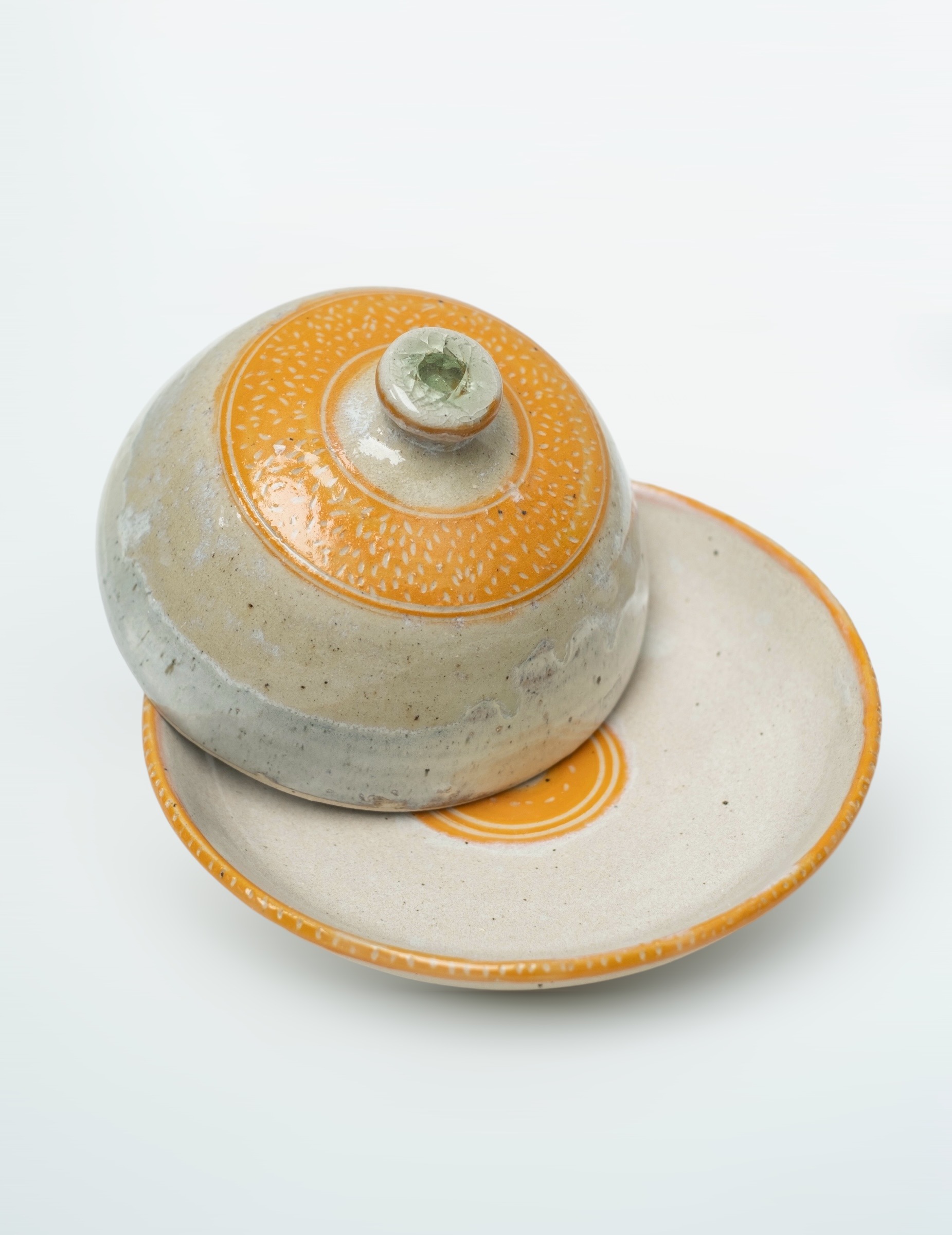 Handcrafted Yellow & Cream Ombre Butter Dish – Stoneware with Venetian Glass Detail