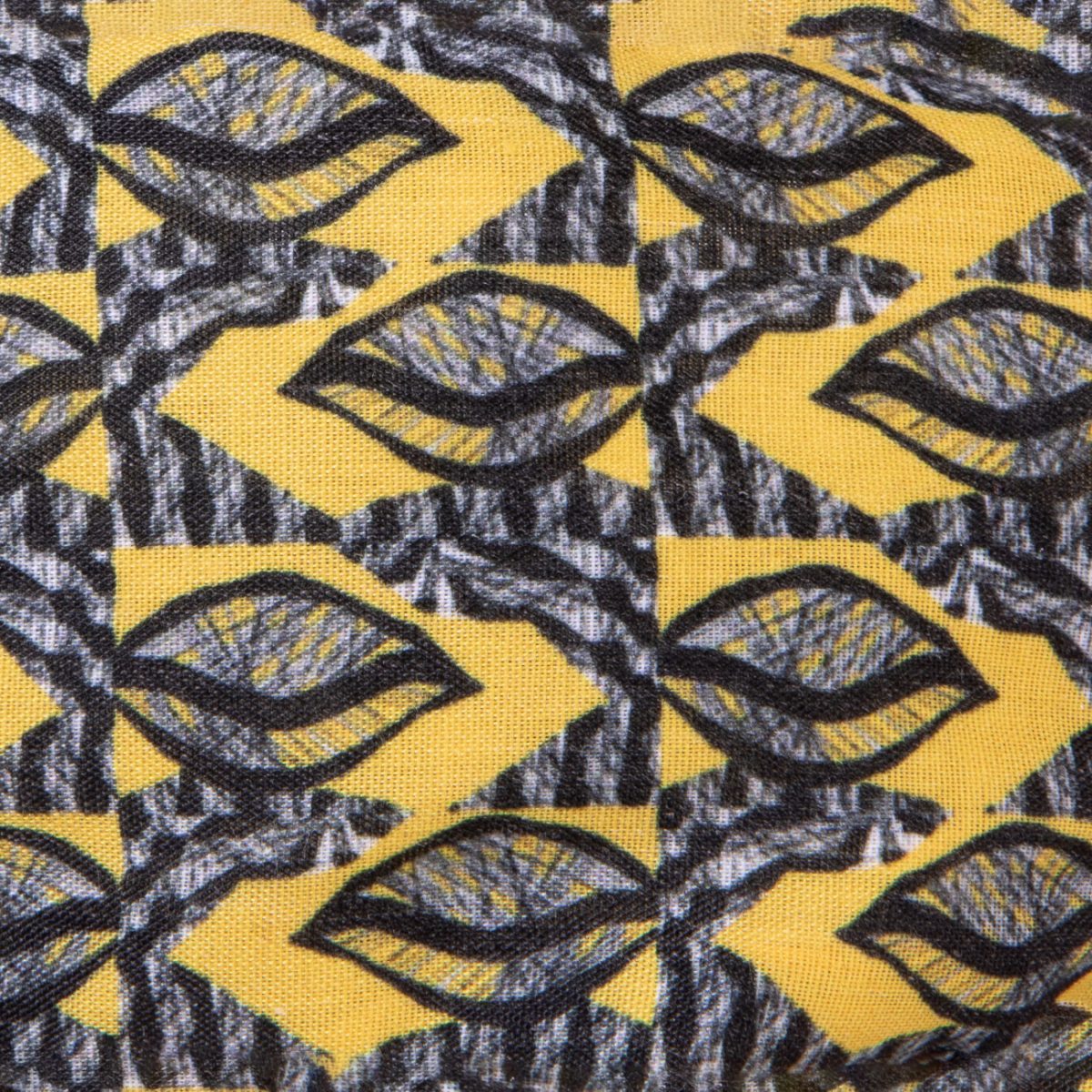- Stylish knotted headband featuring a vibrant yellow and black leaf design.