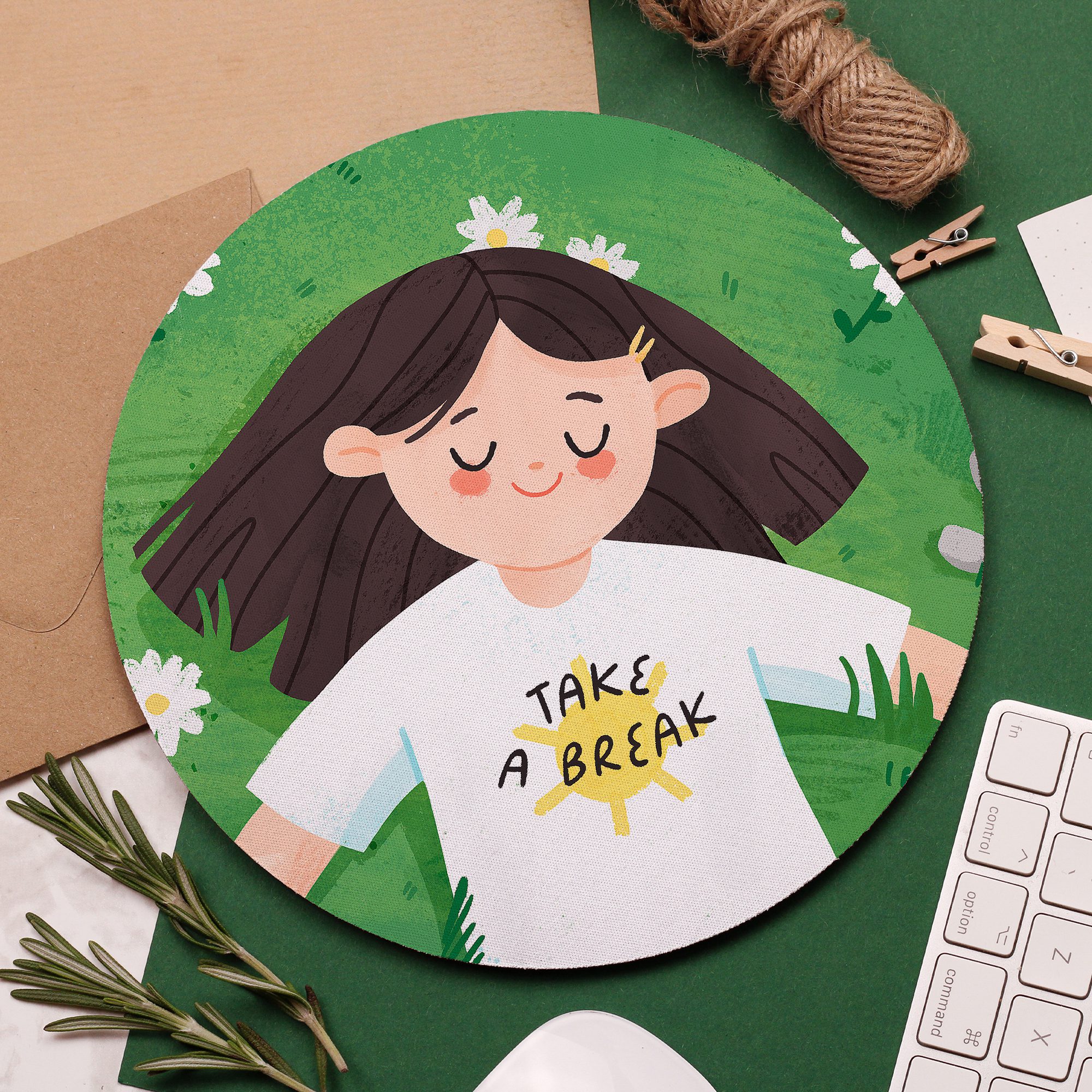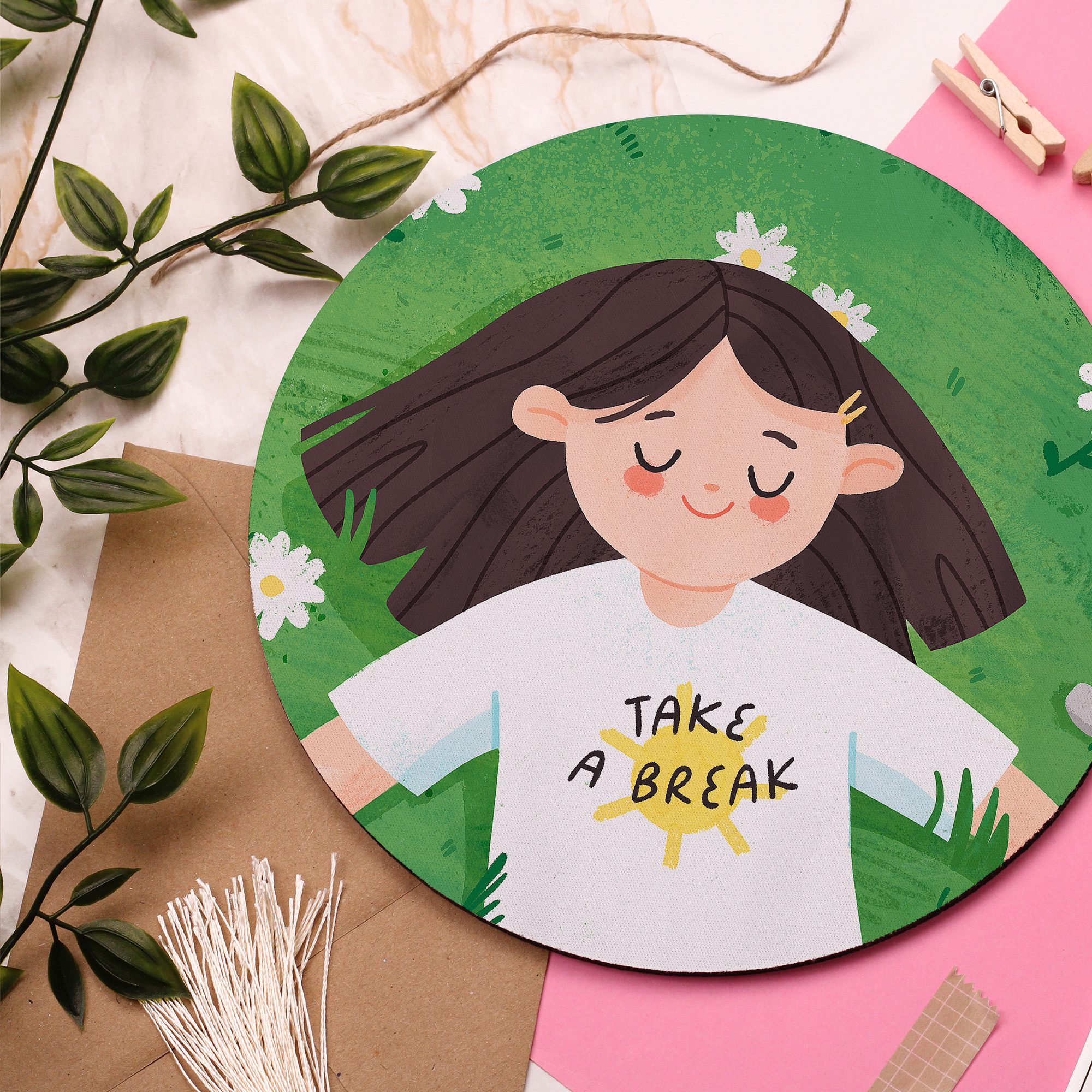 Add a colourful touch to your desk space with this beautiful ‘Take a Break’ Mouse Pad!
